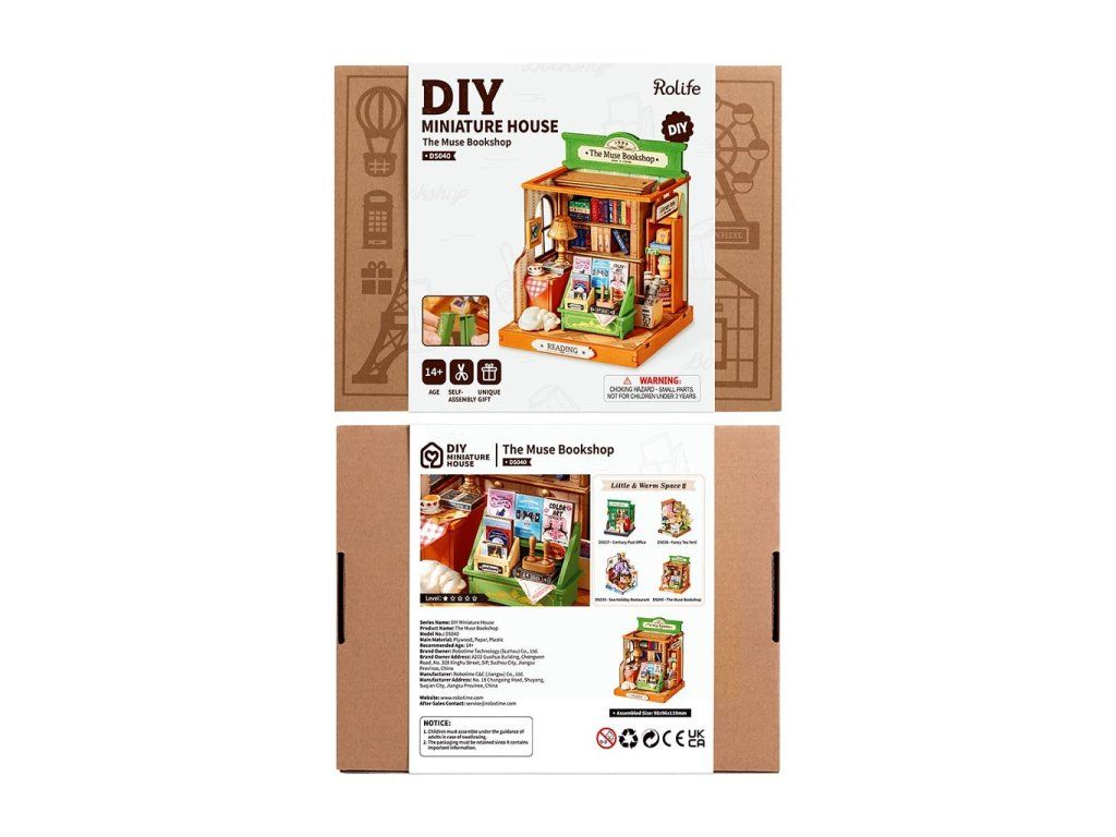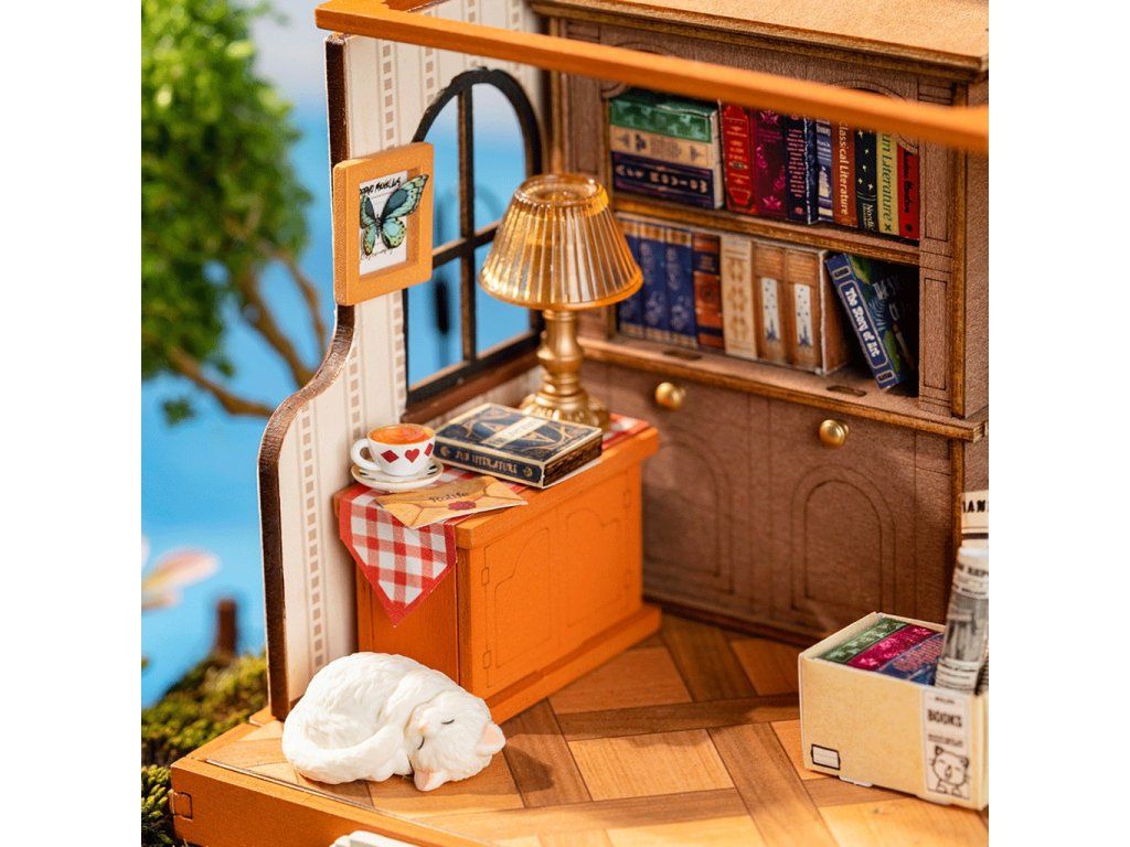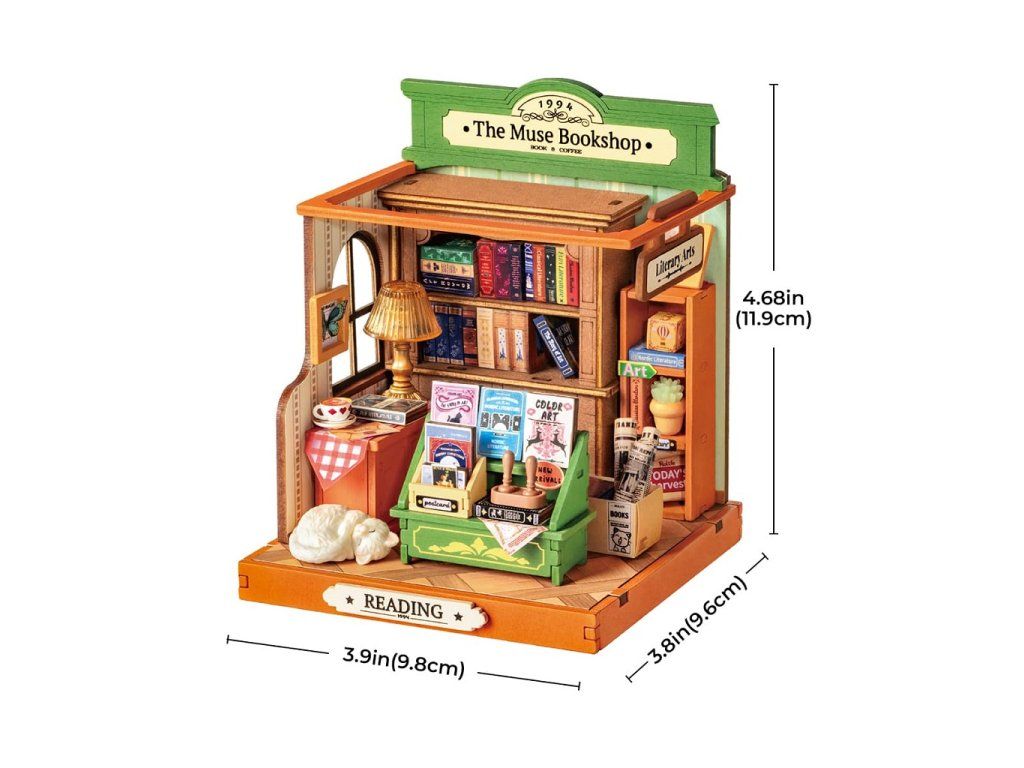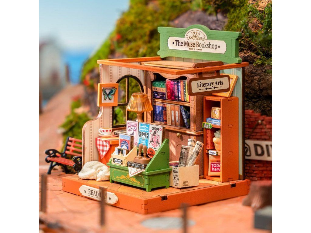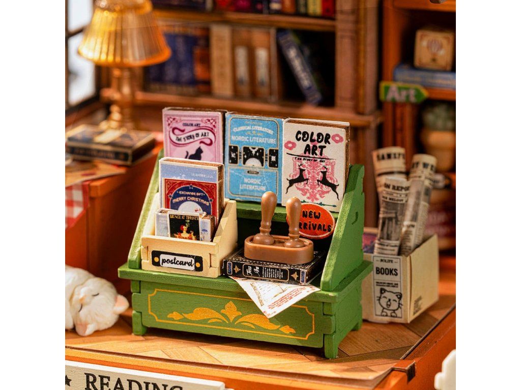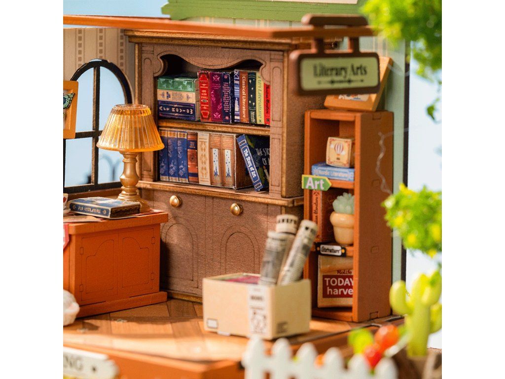 RoboTime 3D drevená skladačka Miniatúra domčeka Kníhkupectvo