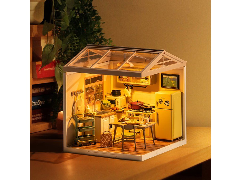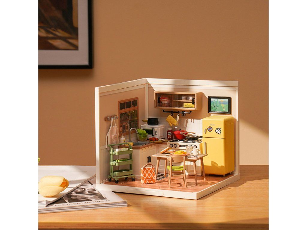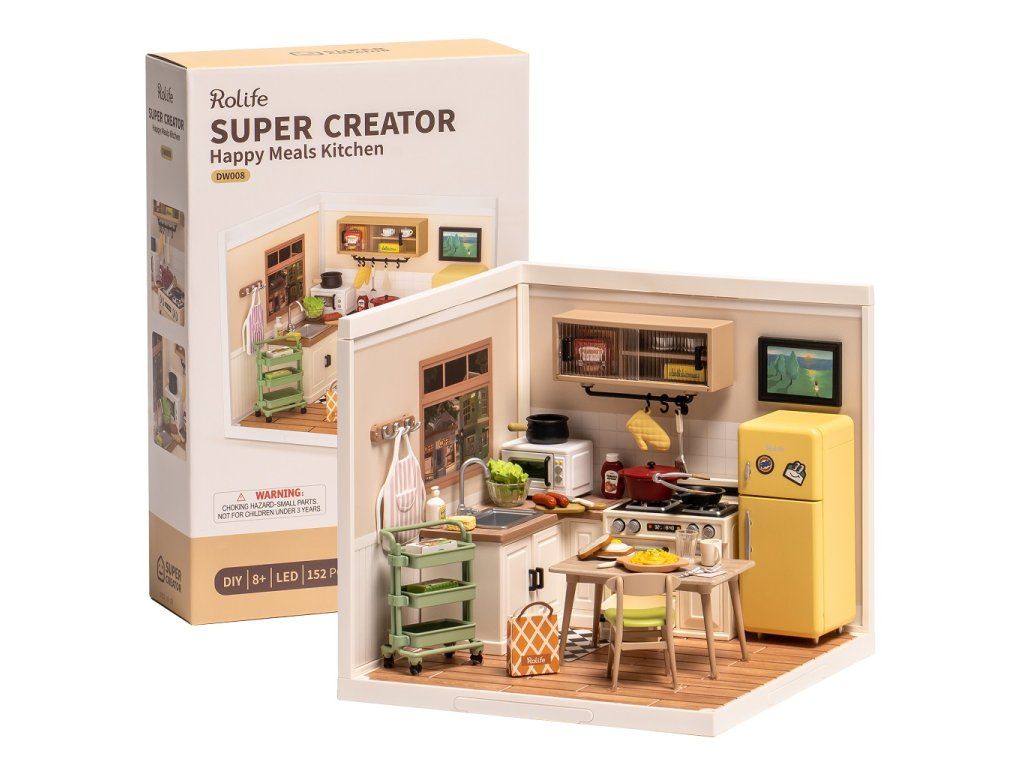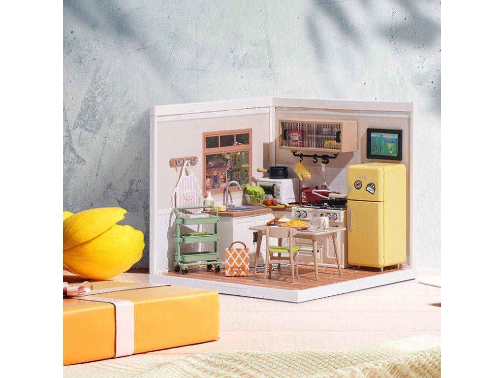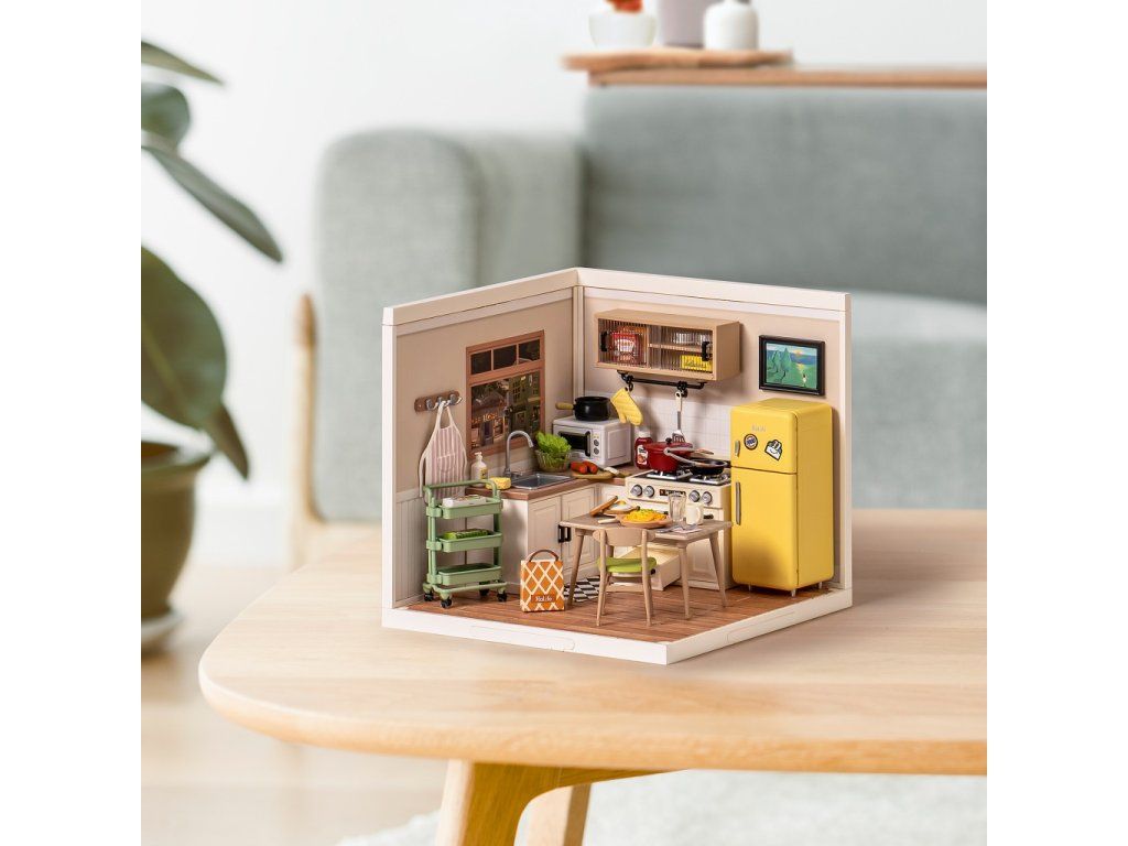 RoboTime 3D drevená skladačka Miniatúra domčeka Kuchynka Happy Meals