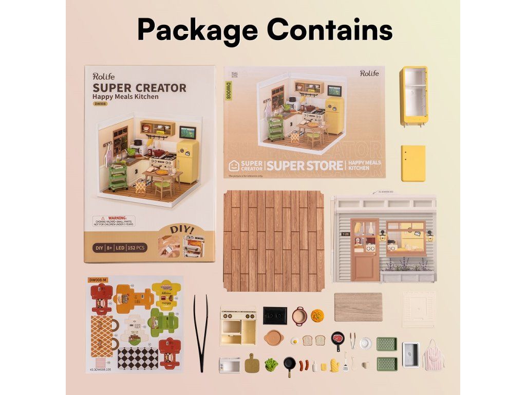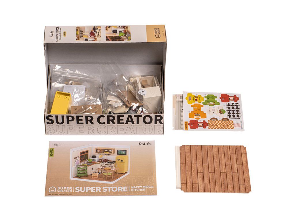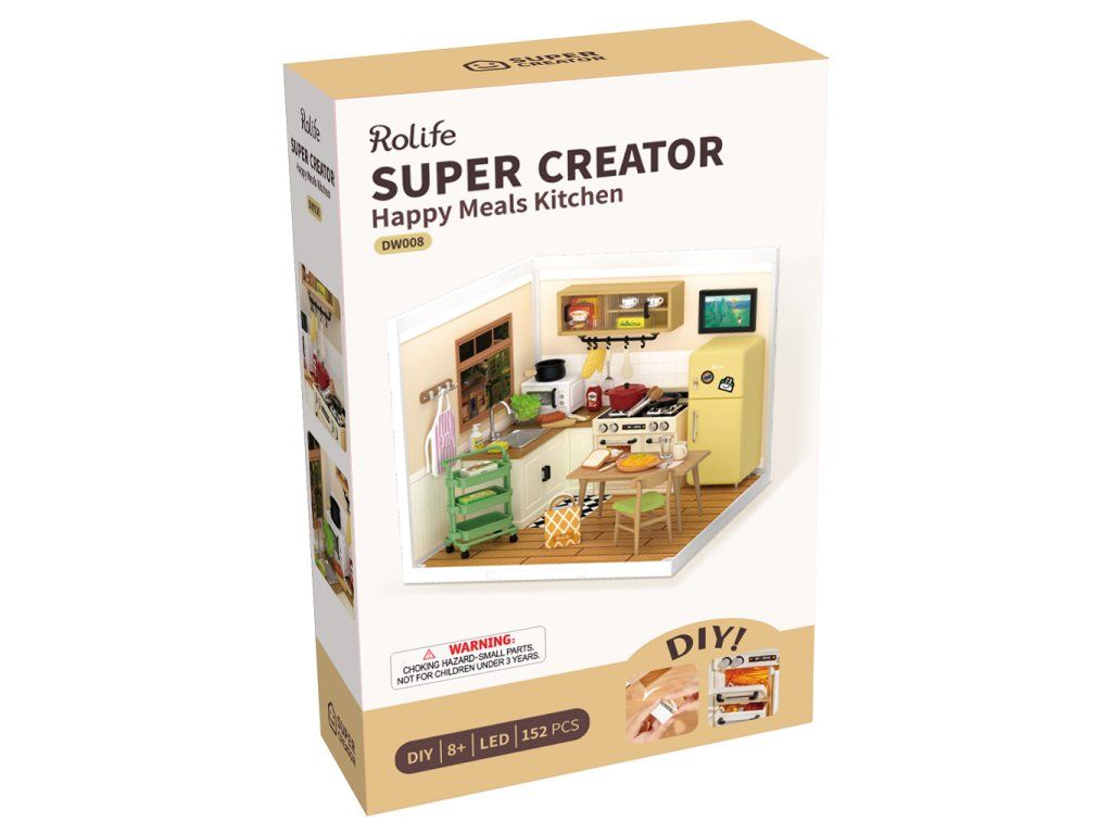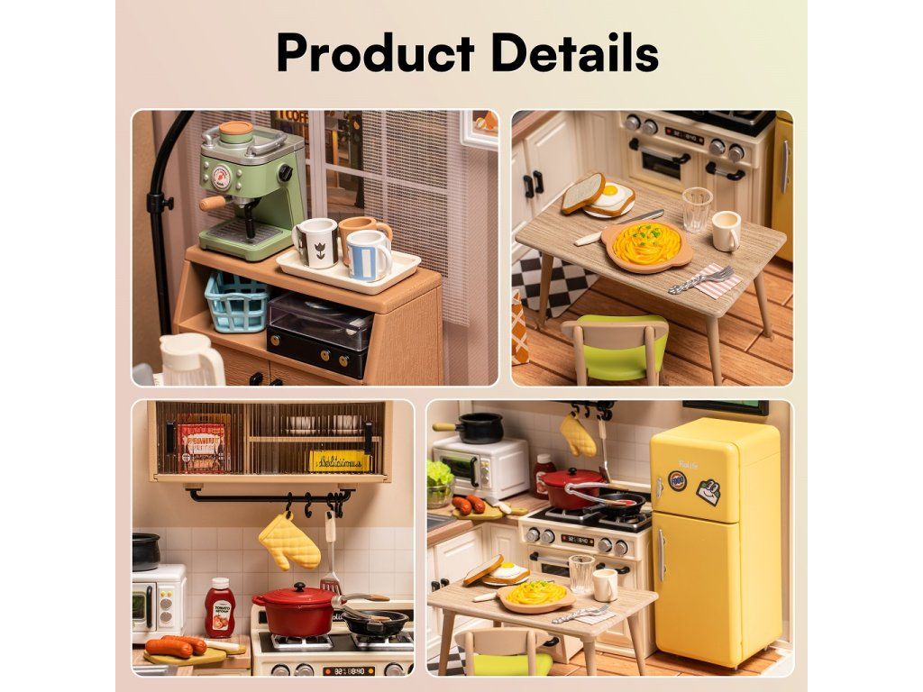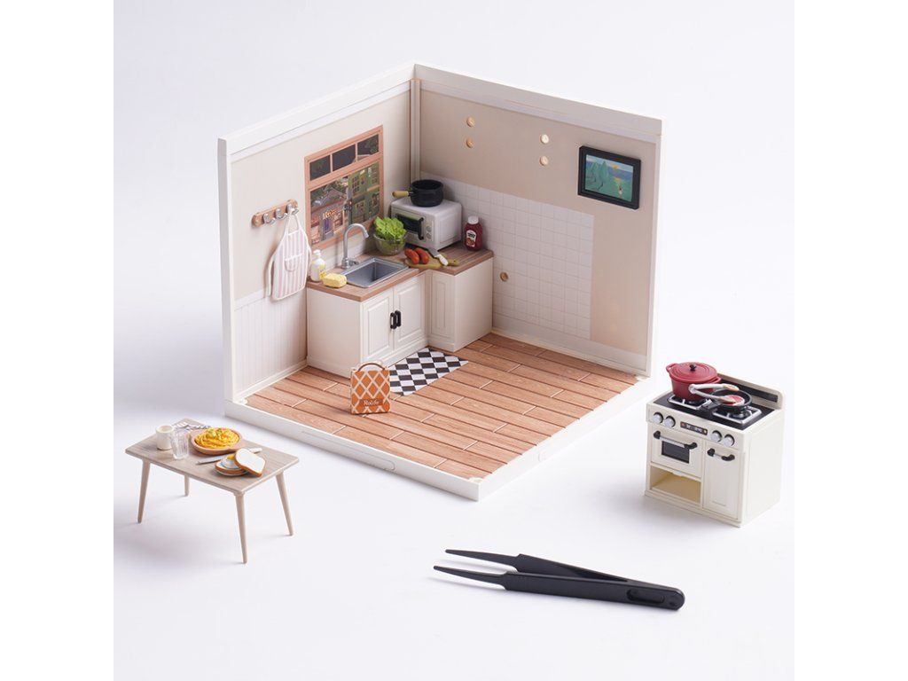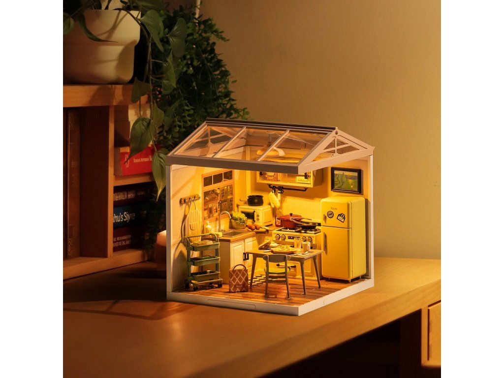 RoboTime 3D drevená skladačka Miniatúra domčeka Kuchynka Happy Meals