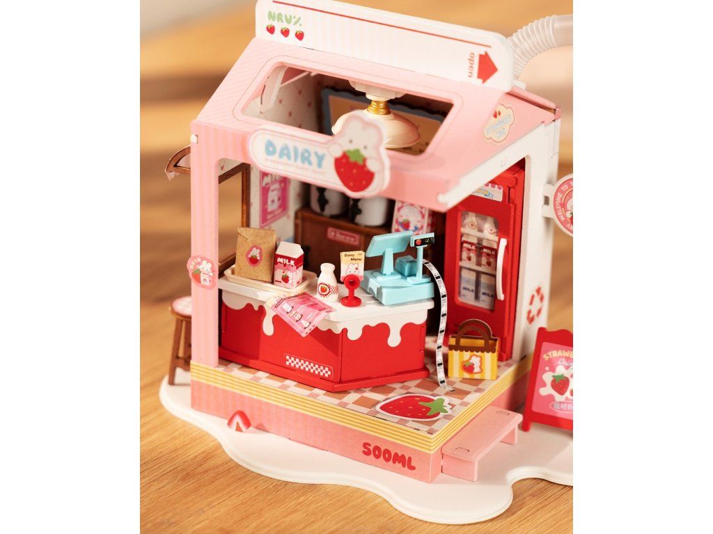 RoboTime 3D drevená skladačka Miniatúra domčeka Mliečny bar Strawberry