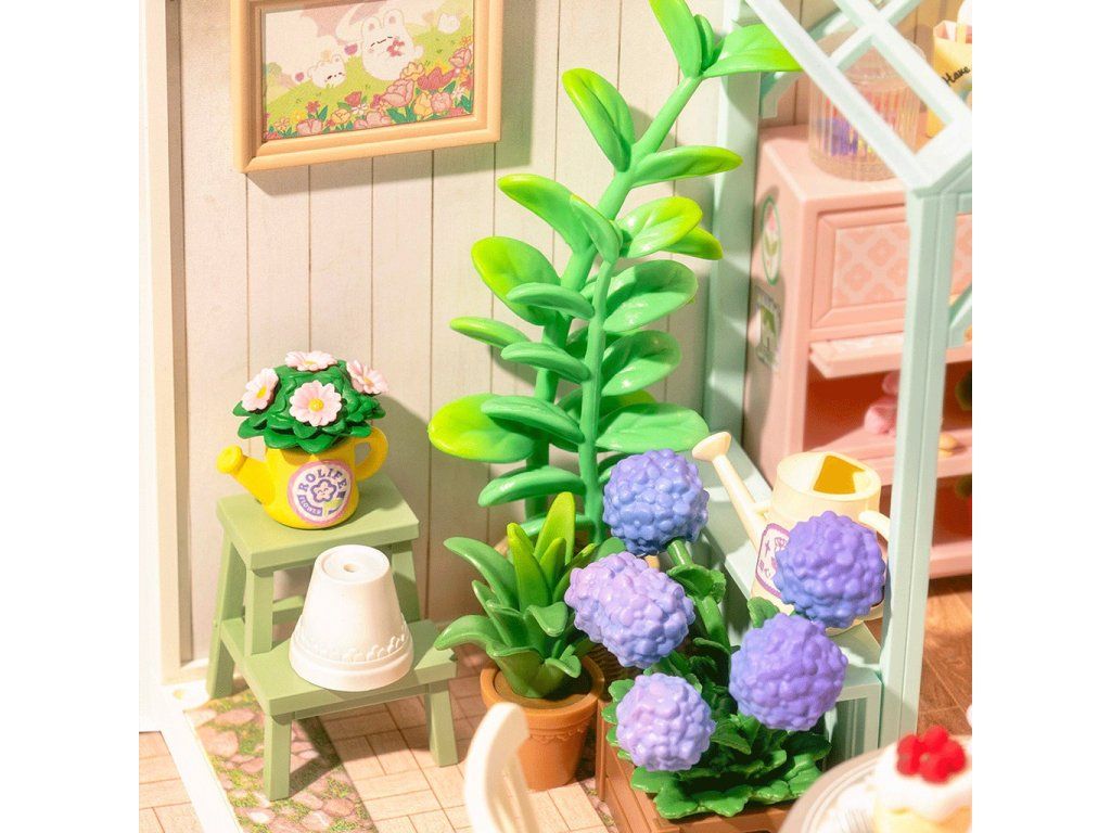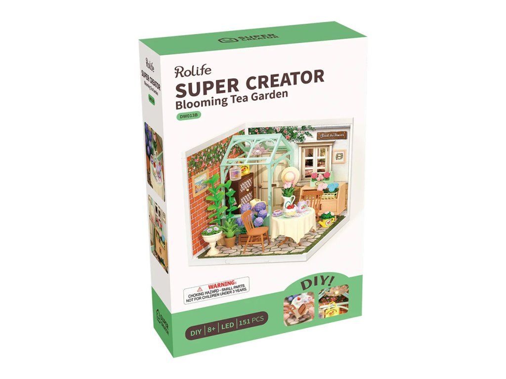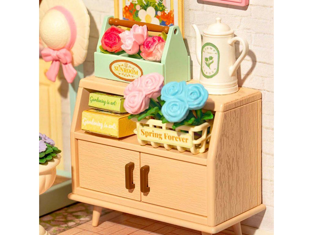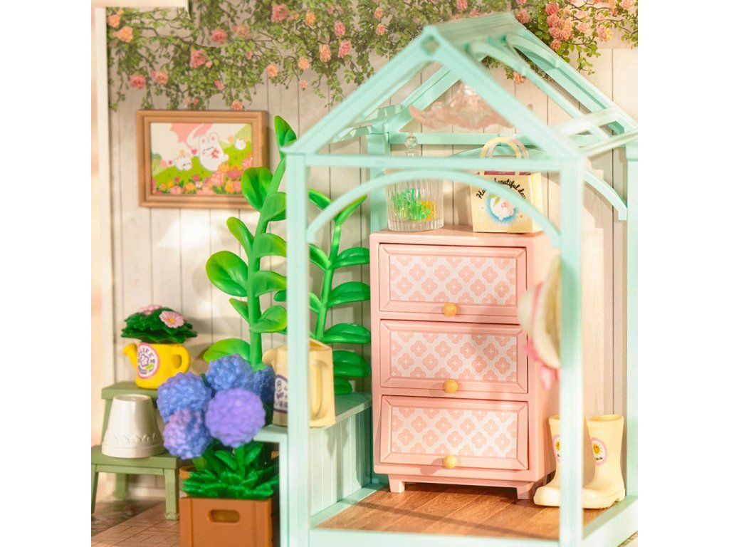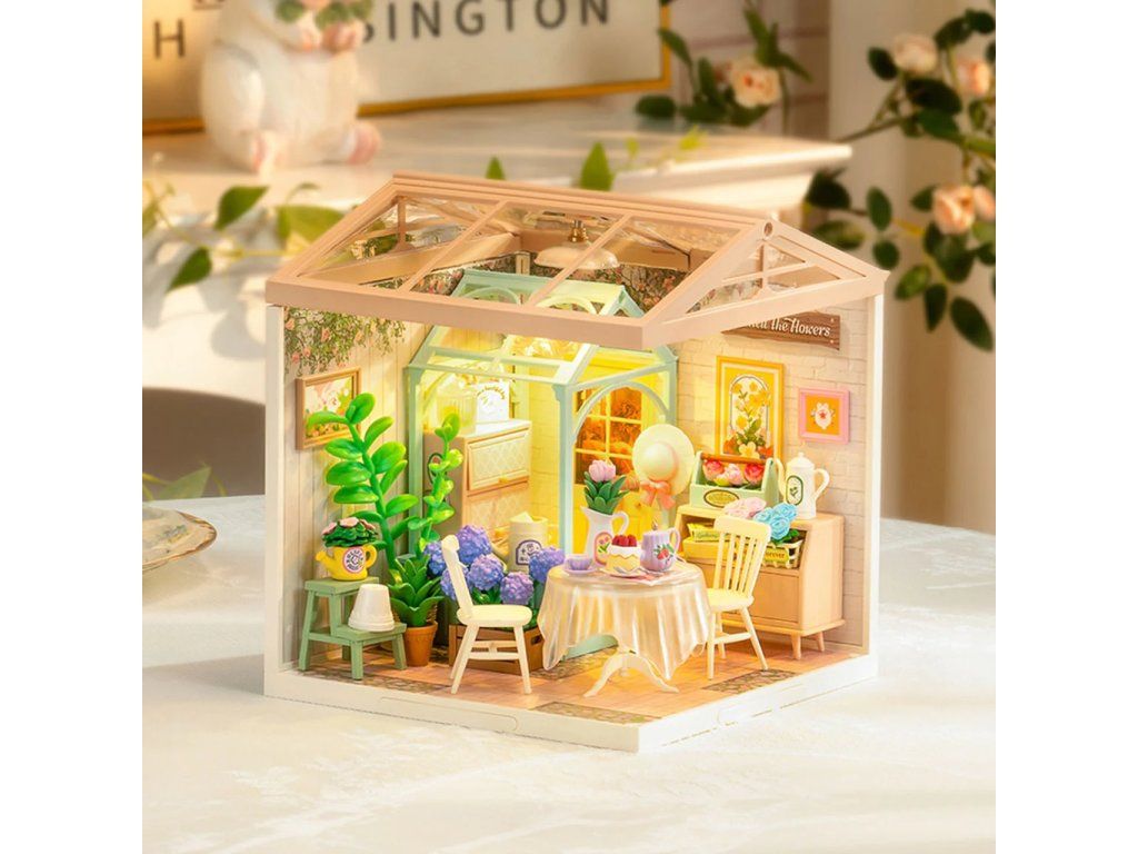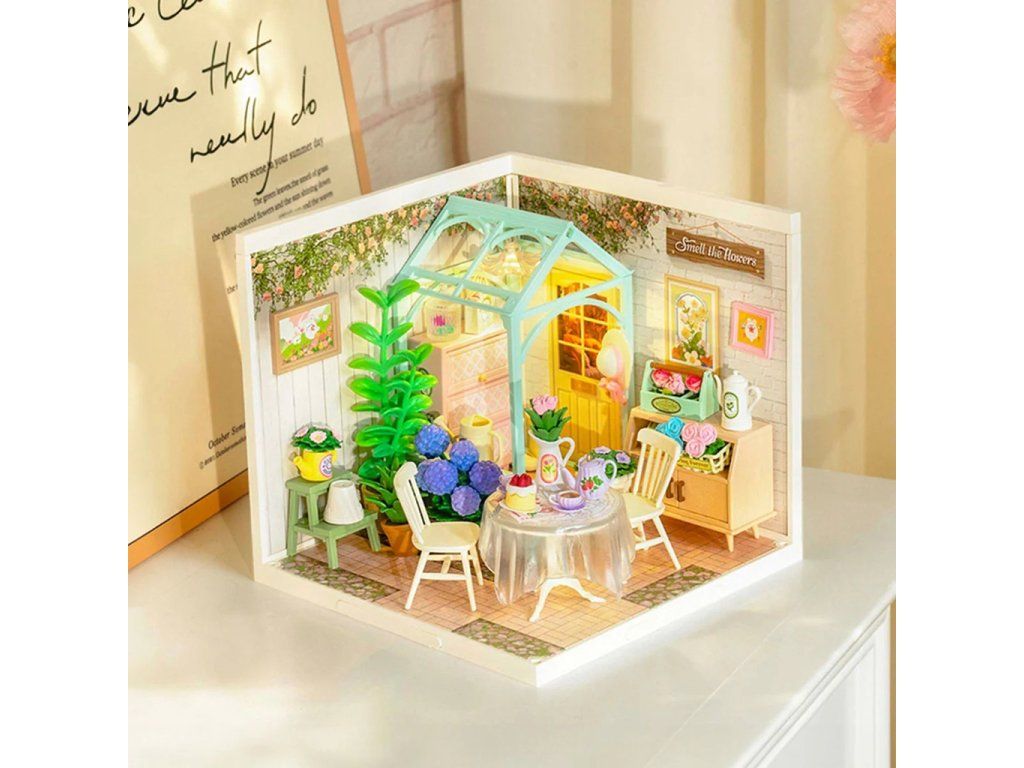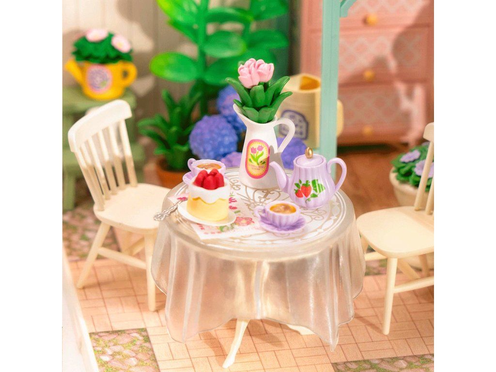 RoboTime 3D drevená skladačka Miniatúra domčeka Posedenie s čajom v kvitnúcej záhrade