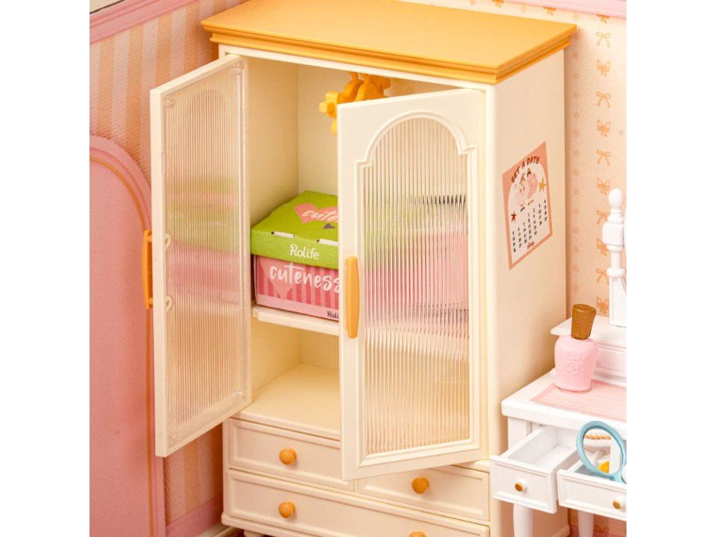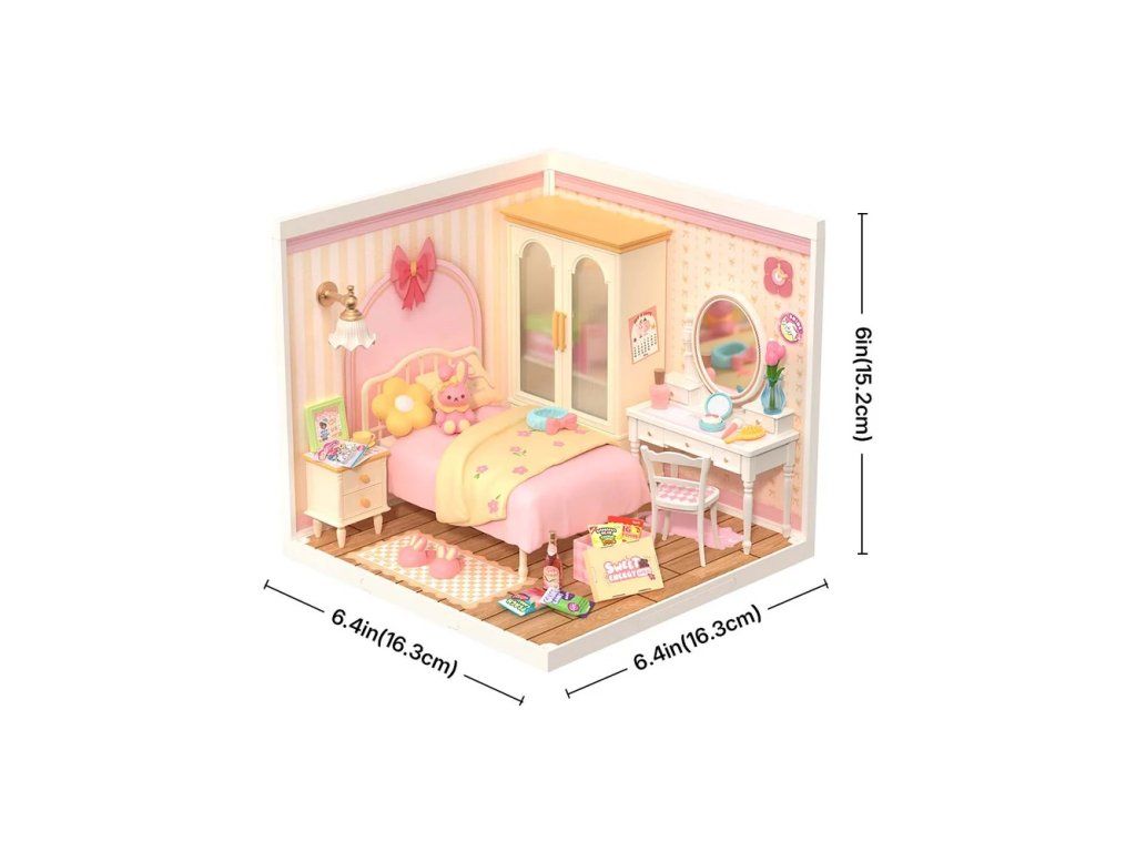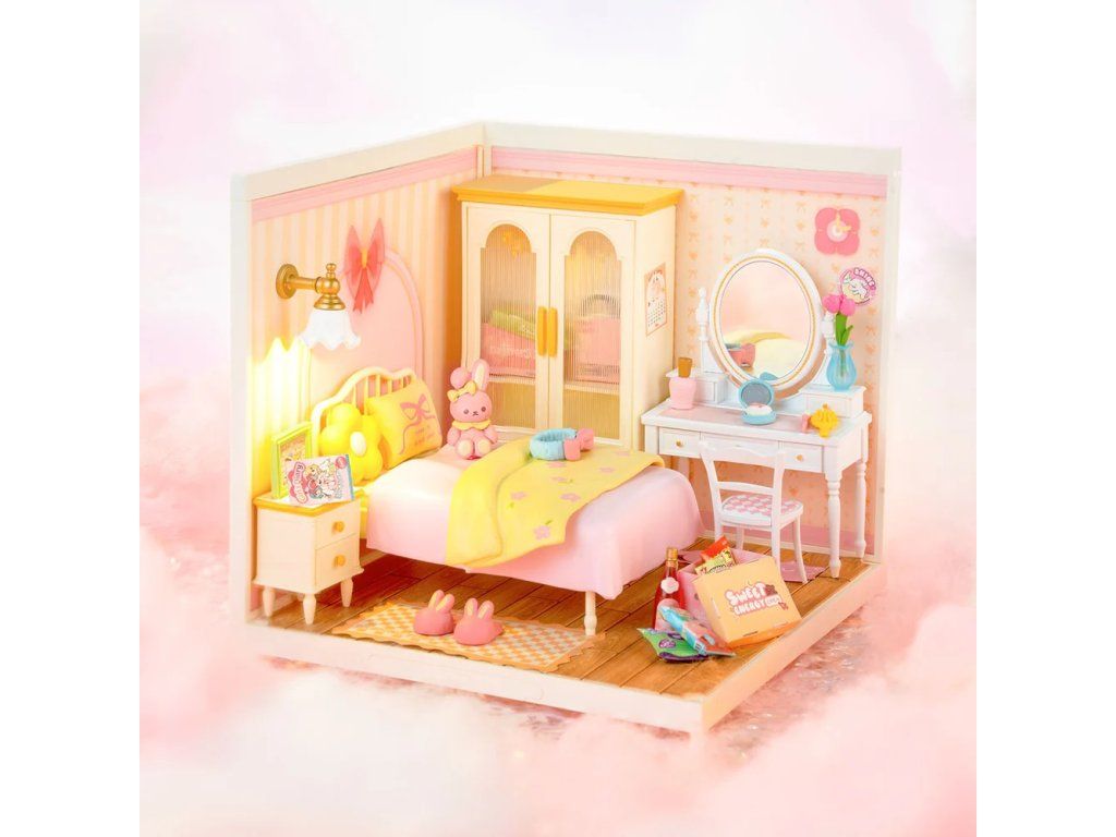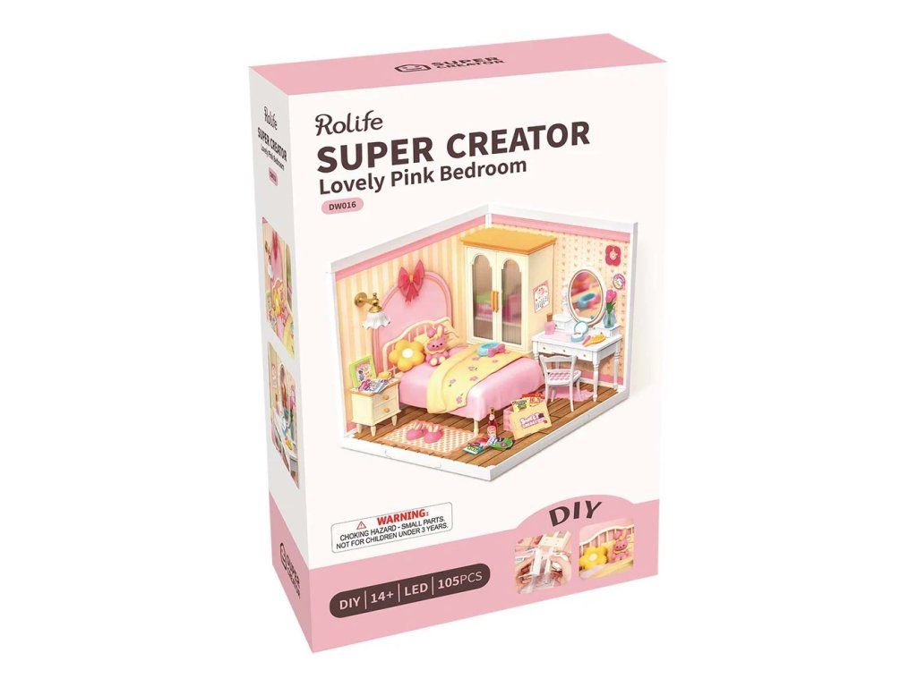 RoboTime 3D drevená skladačka Miniatúra domčeka Ružová izbička