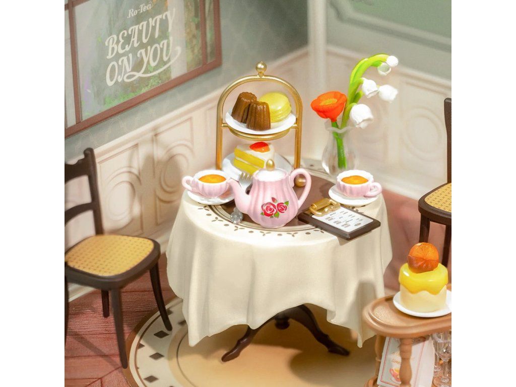 RoboTime 3D drevená skladačka Miniatúra domčeka Sladká čajovňa