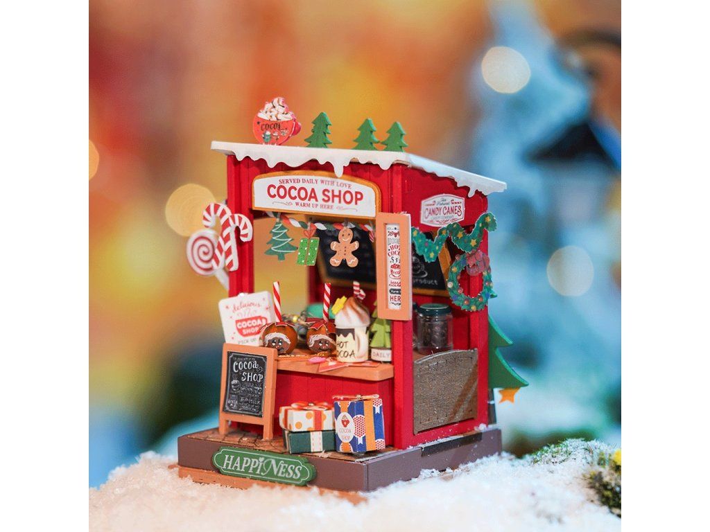 RoboTime 3D drevená skladačka Miniatúra domčeka Stánok s kakaom