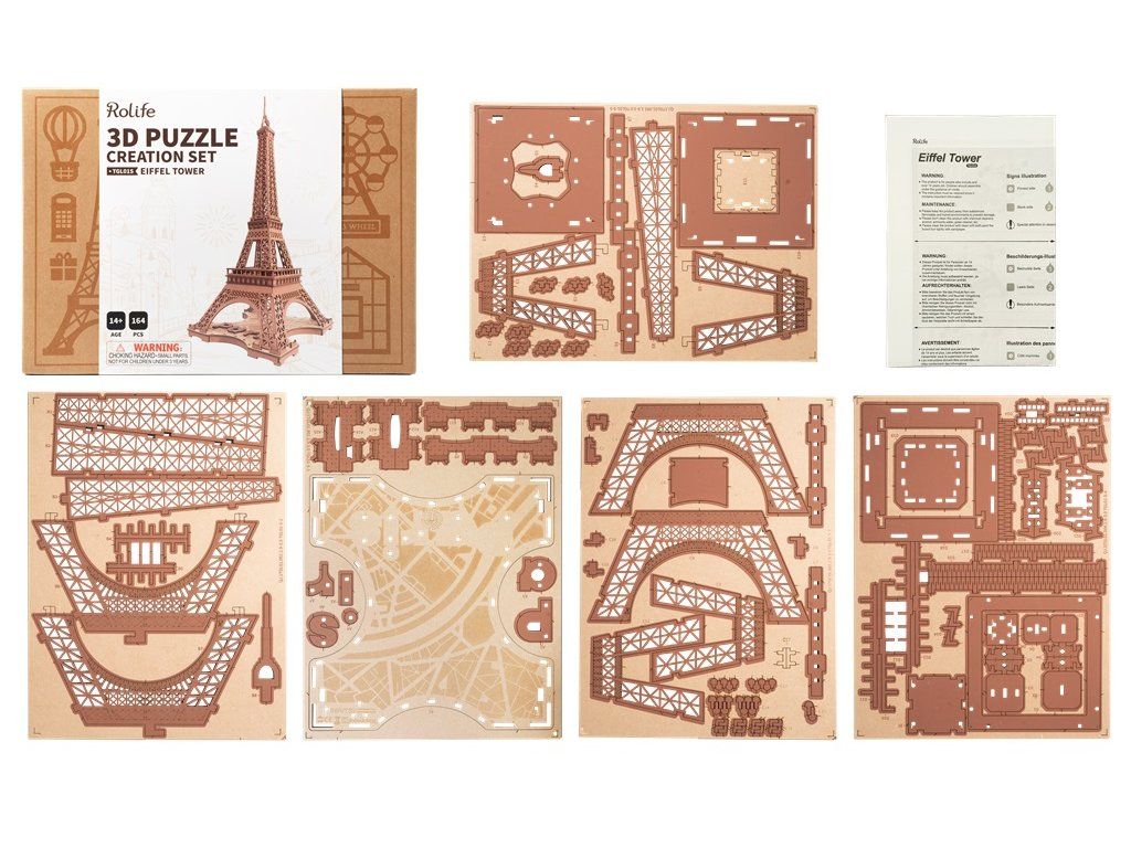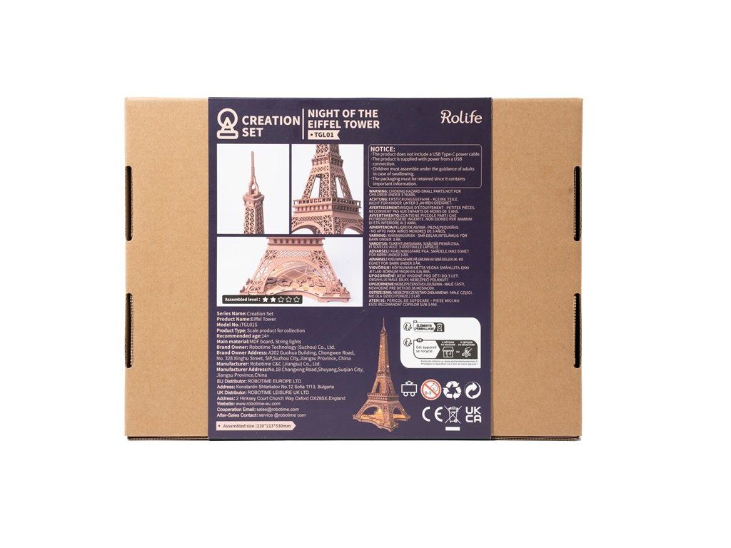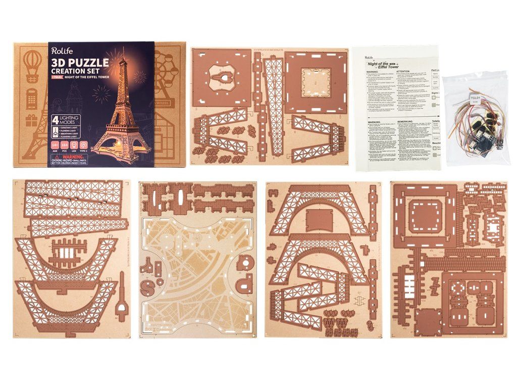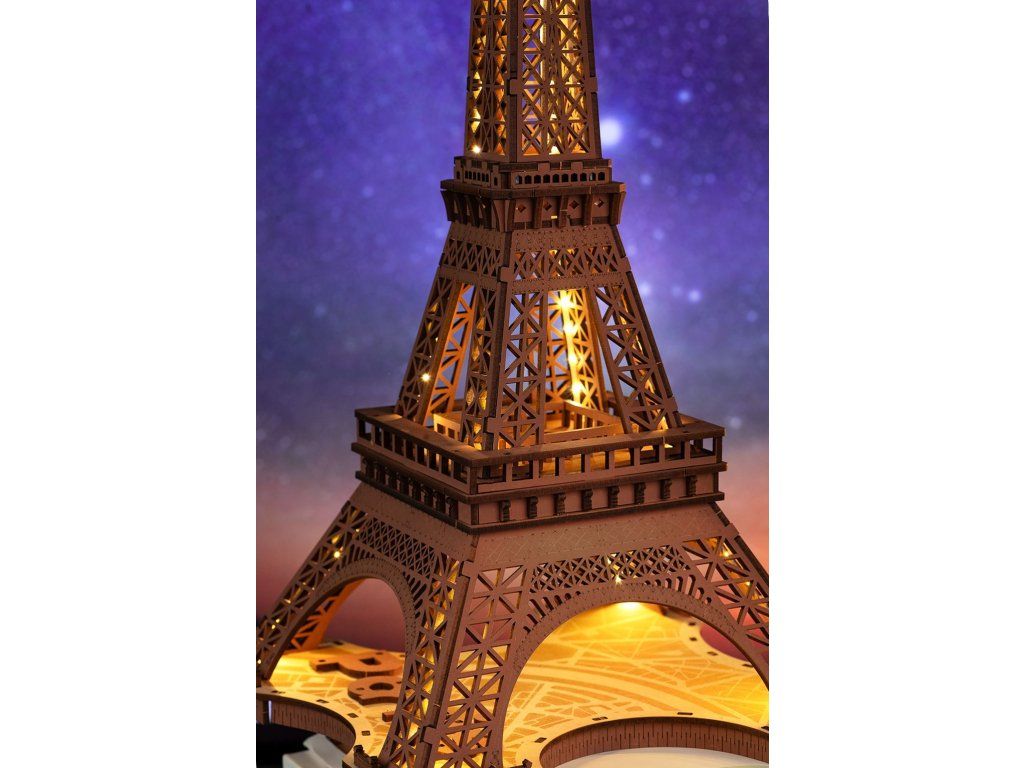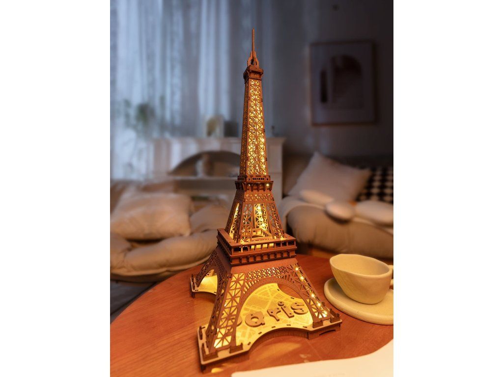 RoboTime 3D drevená skladačka Nočná Eiffelova veža svietiaca