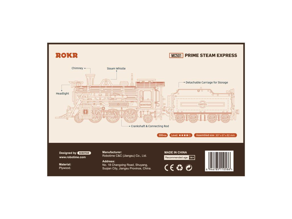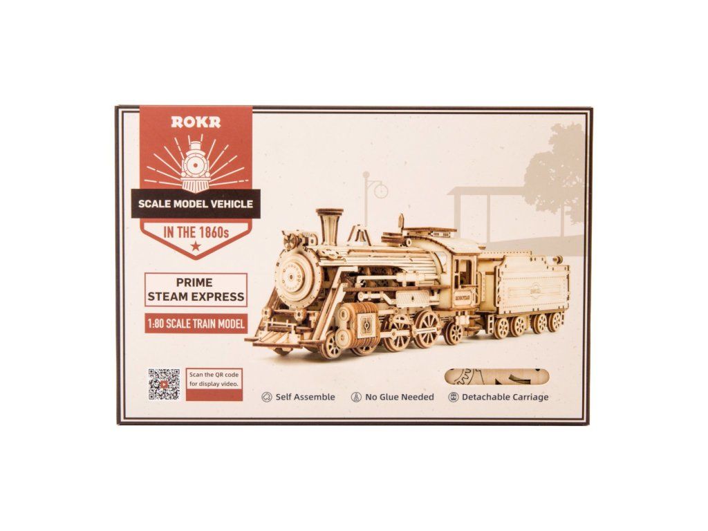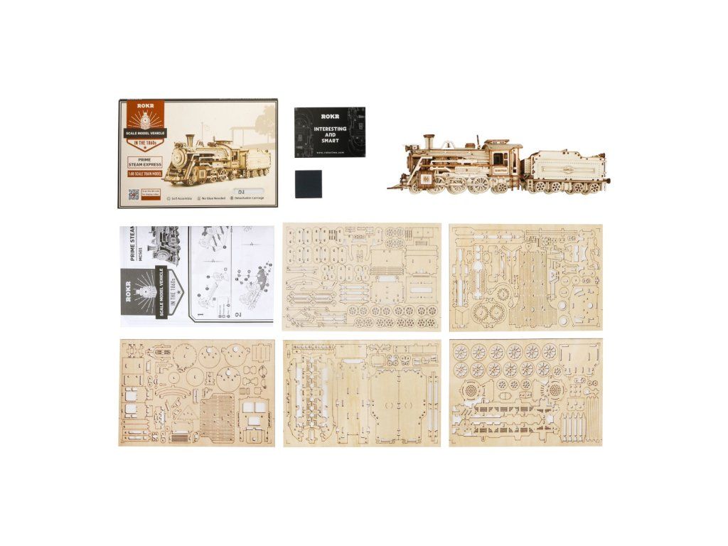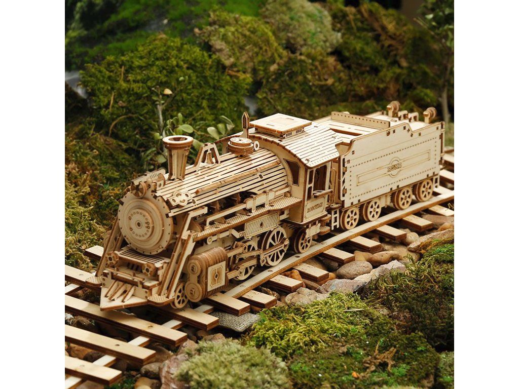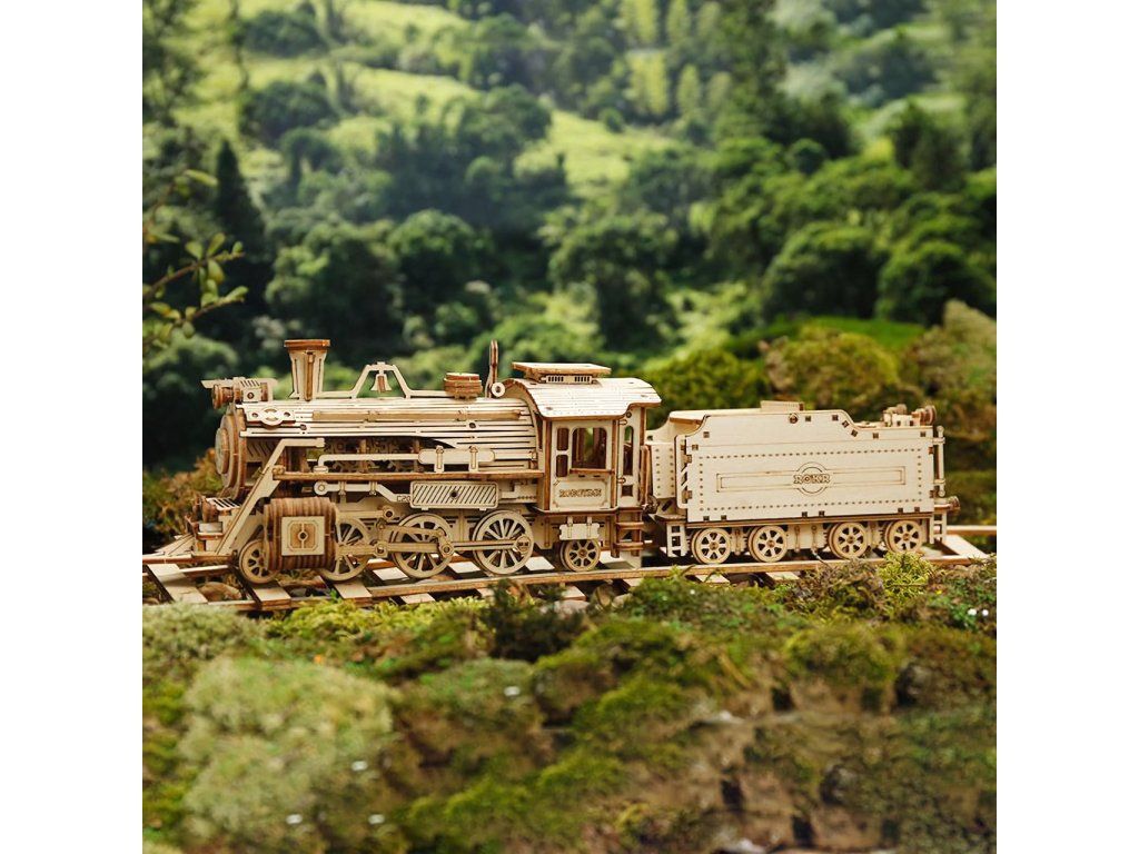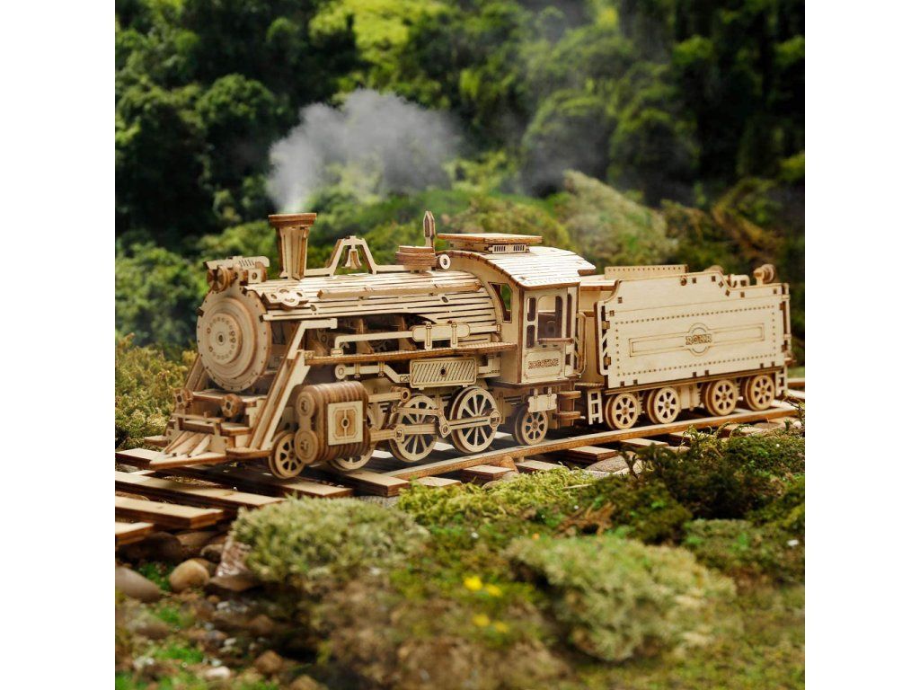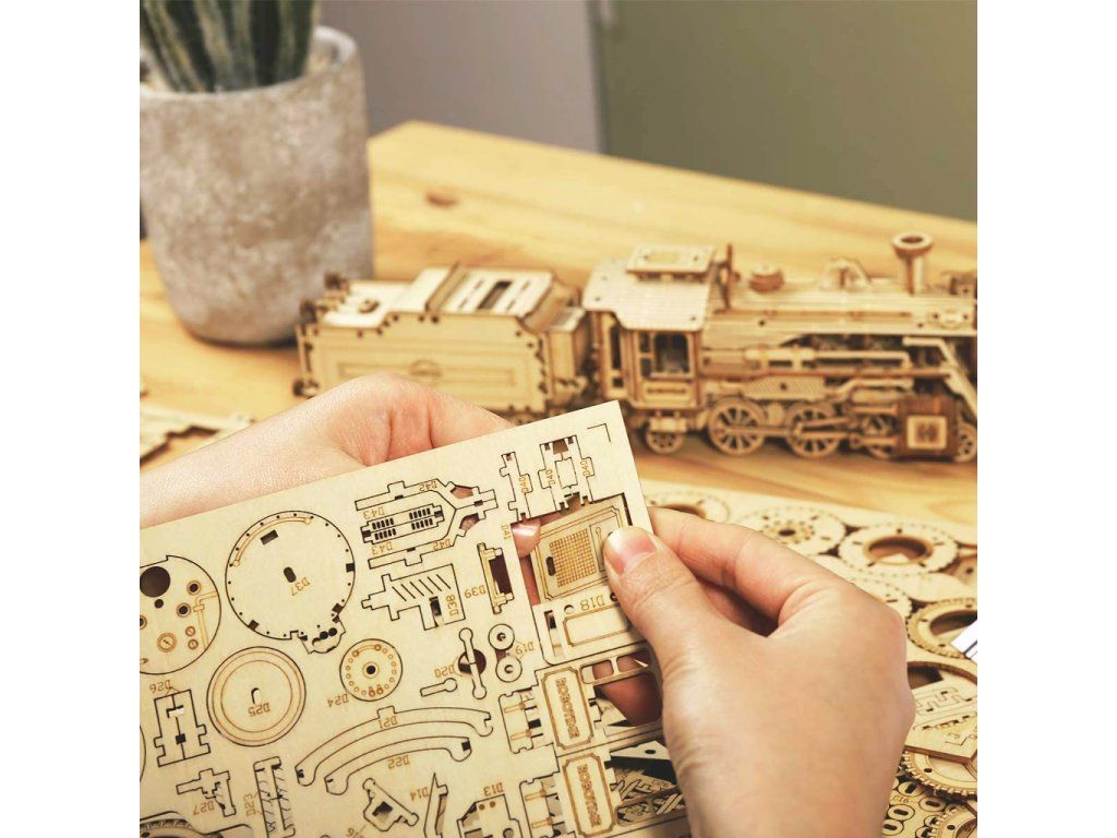 RoboTime 3D drevená skladačka Parná lokomotíva