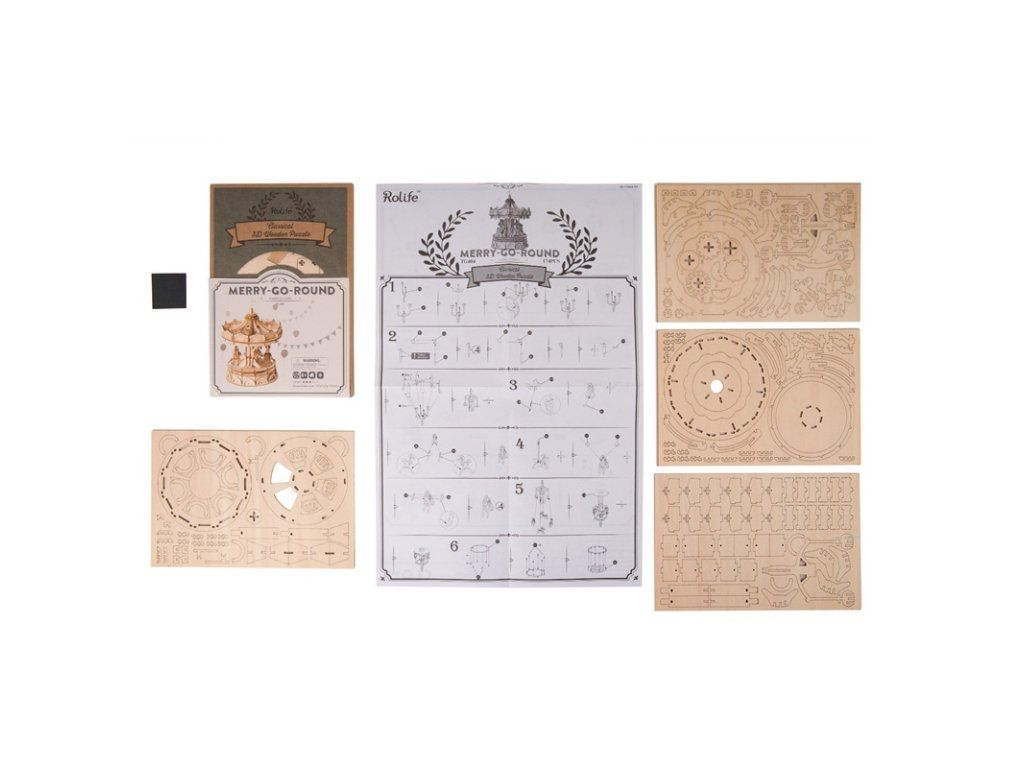 RoboTime 3D drevená skladačka Veselý kolotoč