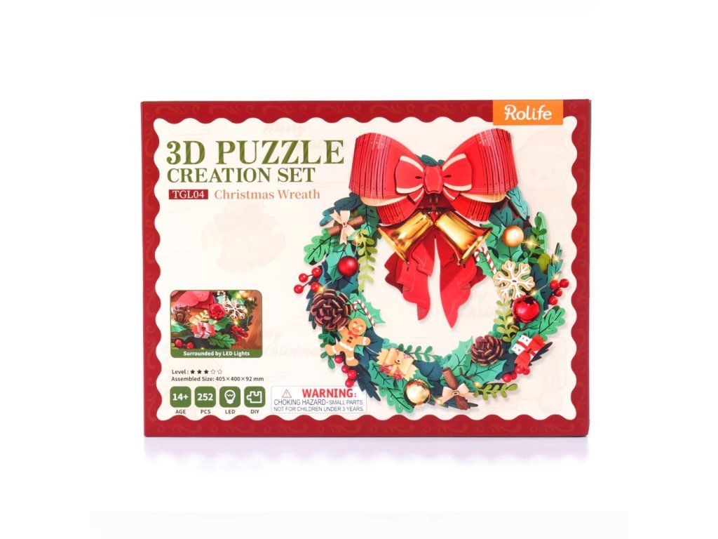 RoboTime 3D drevená skladačka Vianočný veniec