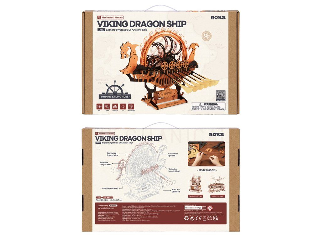 RoboTime 3D drevená skladačka Vikinská dračia loď