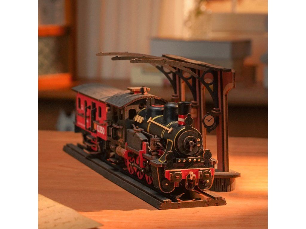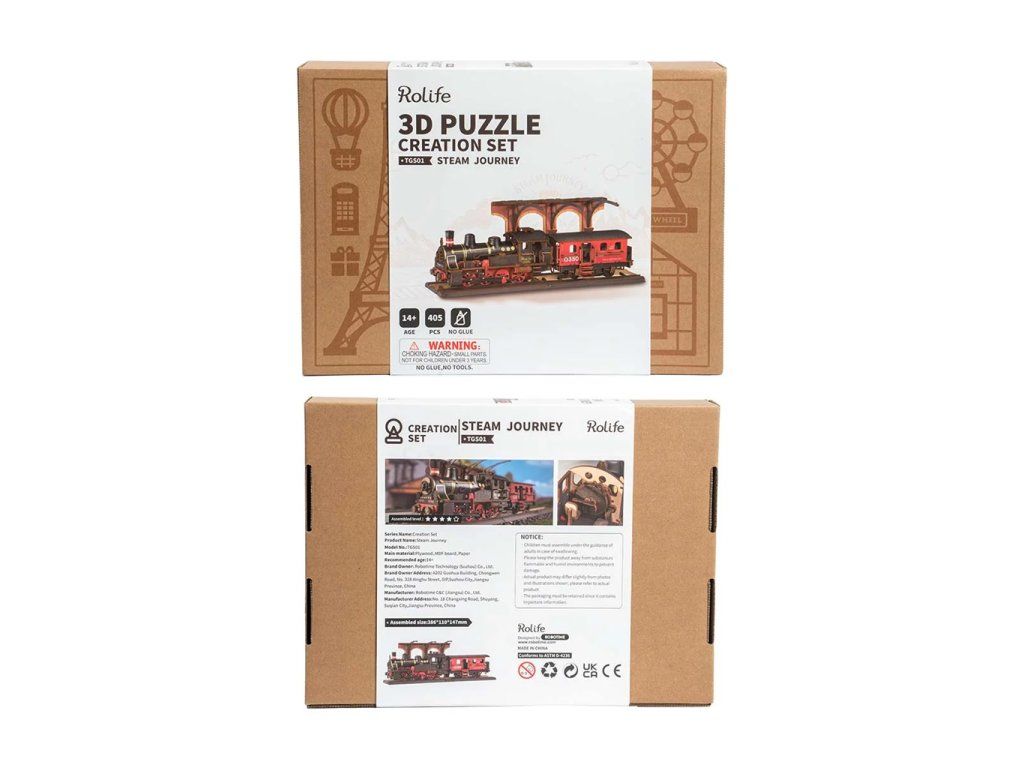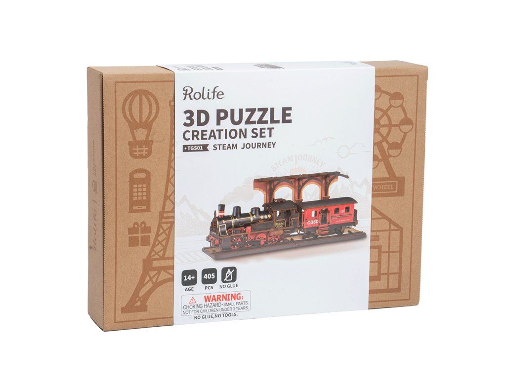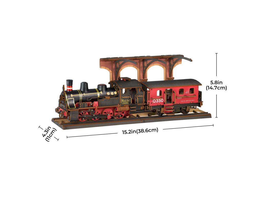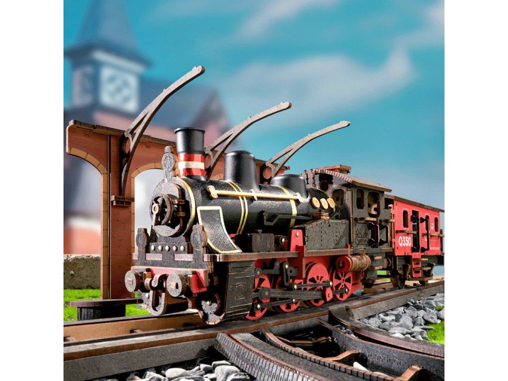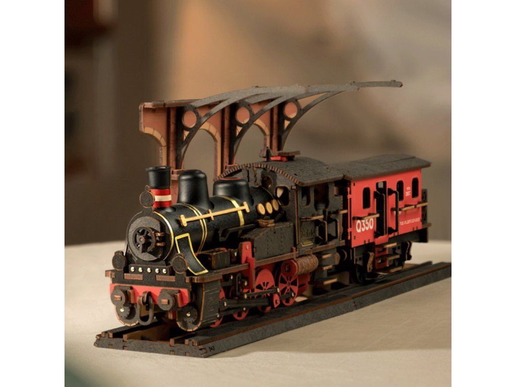 RoboTime 3D drevená skladačka Vintage parná lokomotíva