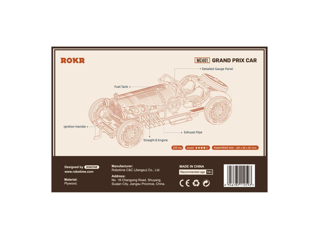 RoboTime 3D drevená skladačka Závodné auto