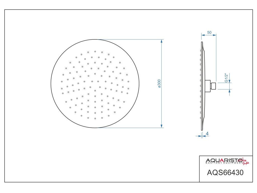 sprchová hlavica okrúhla, priemer 300 mm, plast, chróm, THIN