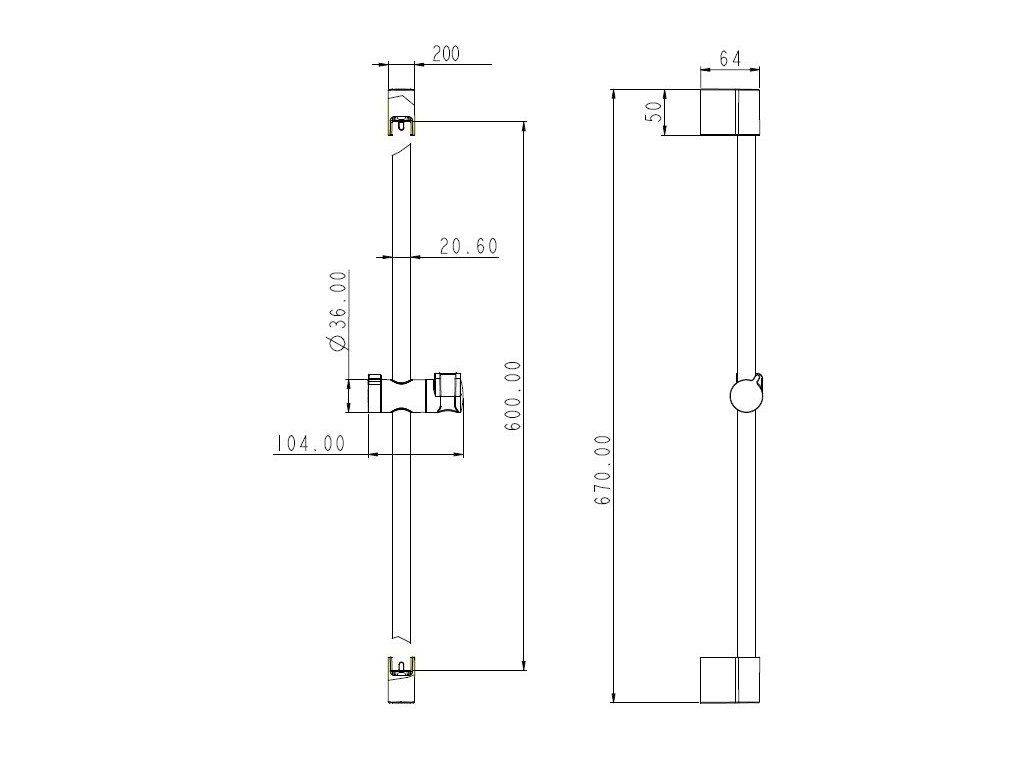 Sprchová tyč, dĺžka 670mm, HERZ, čierna