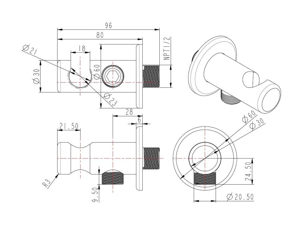 Stenová prípojka na sprchu k podomietkovej batérii, s držiakom ručnej sprchy HERZ, čierna