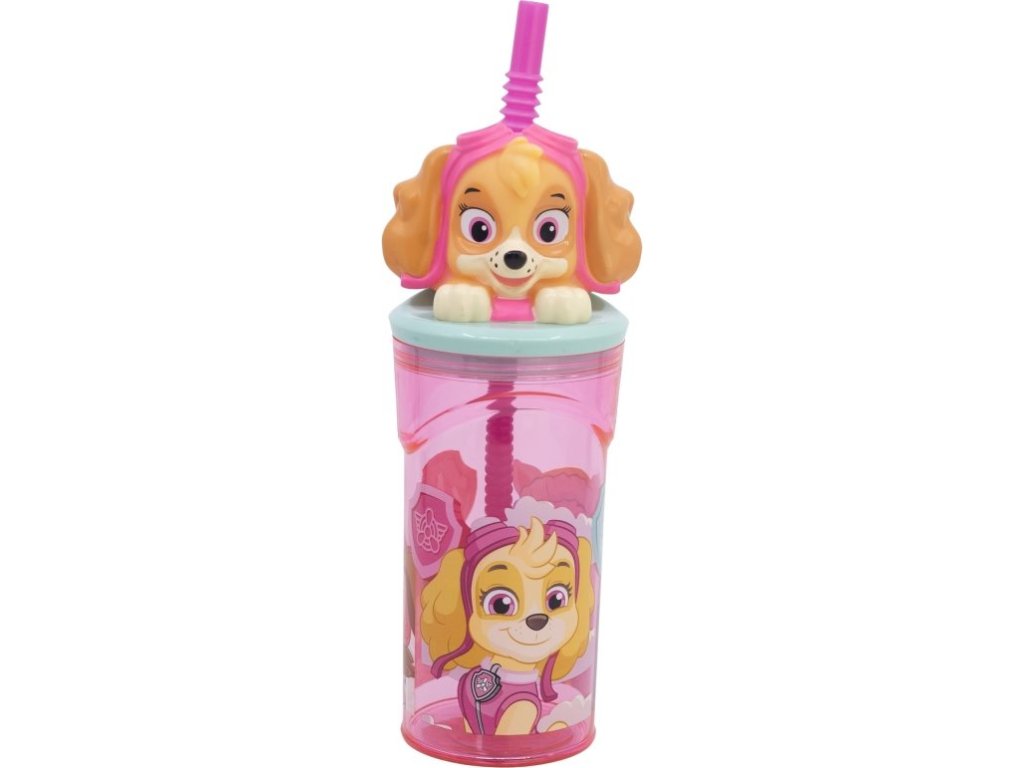 STOR Láhev s brčkem Tlapková patrola 360 ml Růžová
