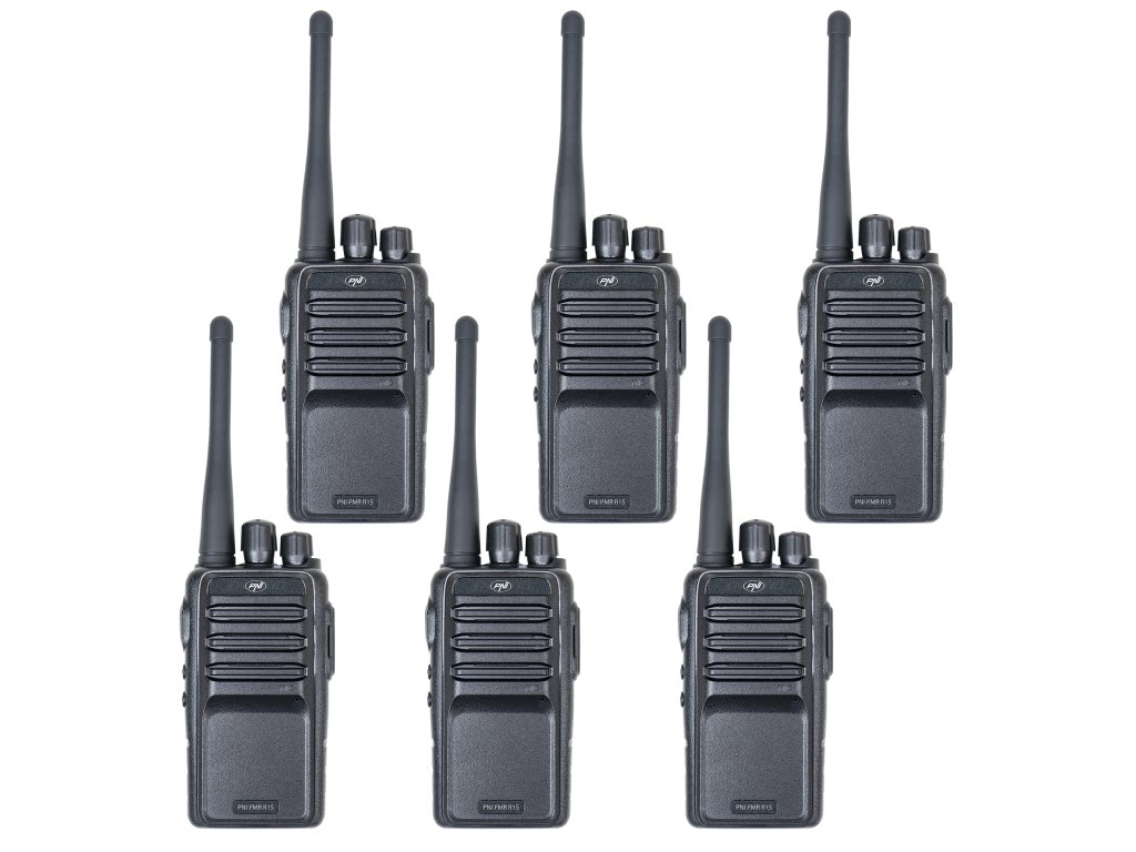 Súprava 6 prenosných rádiostaníc PNI PMR R15 0,5W, 16 programovateľných kanálov, 16 PMR a 50 CTCSS a 104 DCS tónov, ASQ, TOT, monitor, programovateľné, 1200mAh batéria