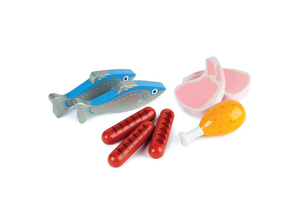 Tidlo Drevená debnička s mäsom a rybami