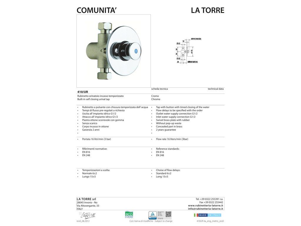 Tlačný ventil pisoárový podomietkový