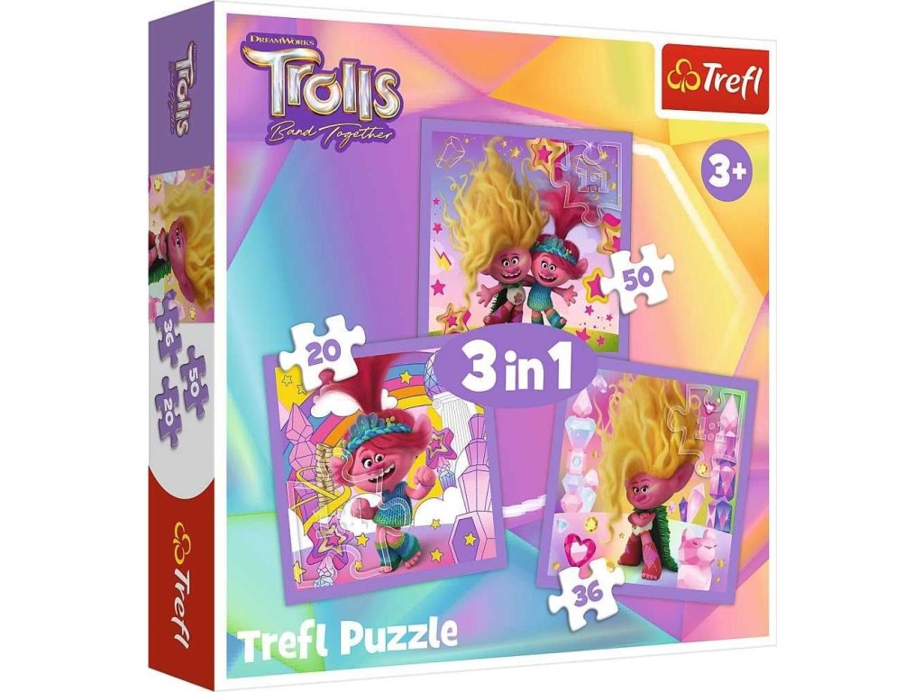 TREFL Puzzle Trollové 3: Seznamte se s Trollíky 3v1 (20,36,50 dílků)