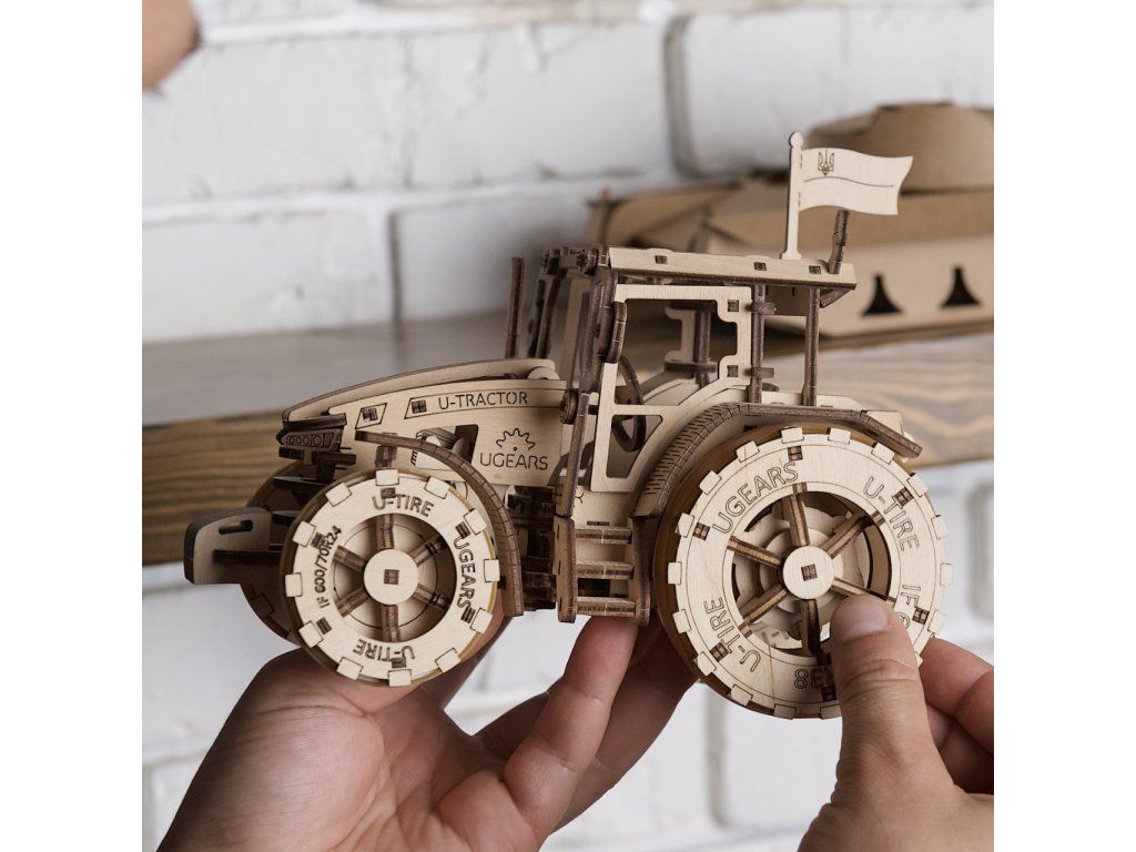 Ugears 3D drevené mechanické puzzle Traktor Wins