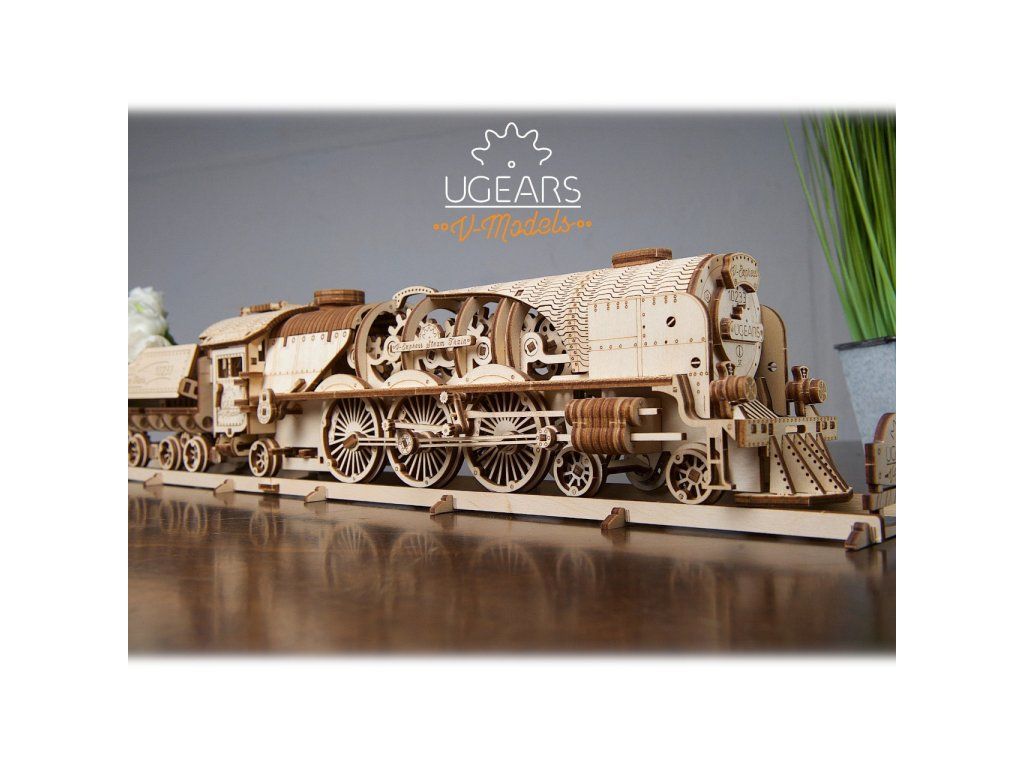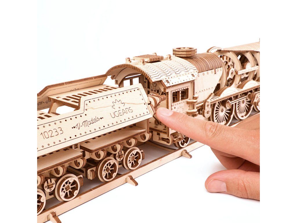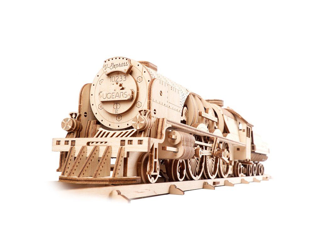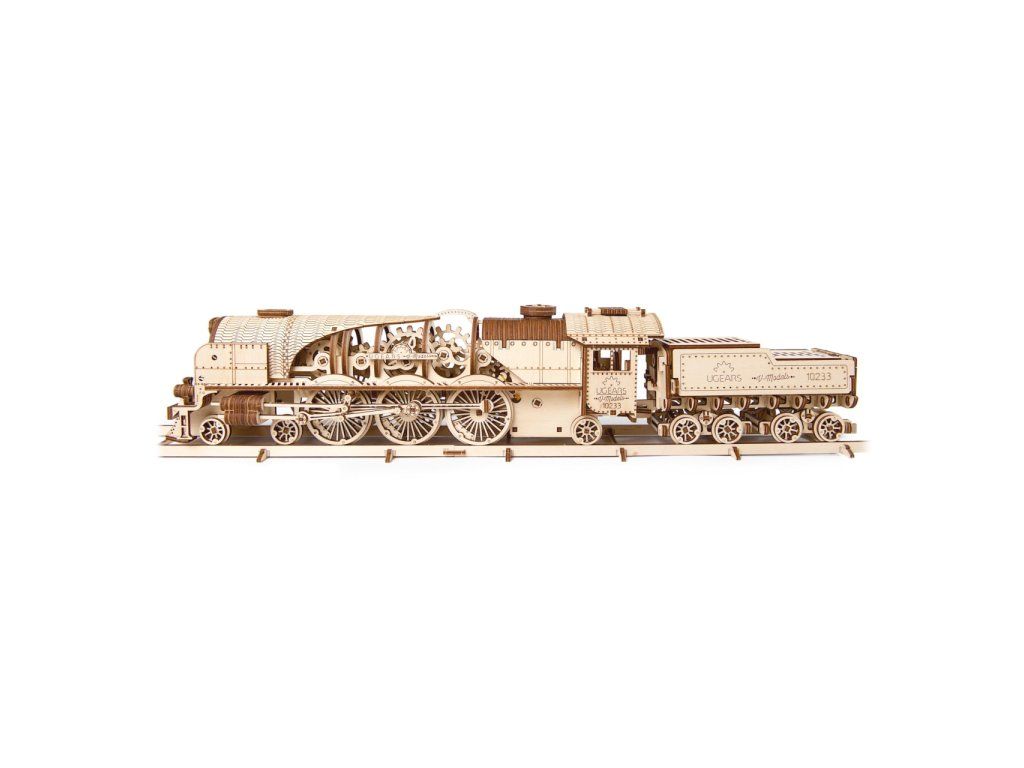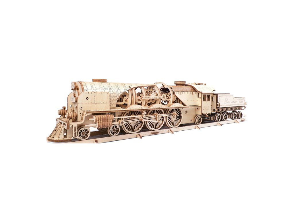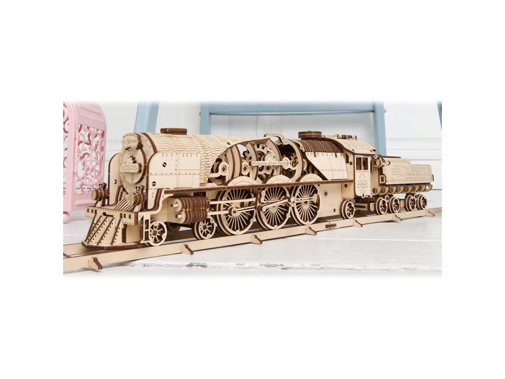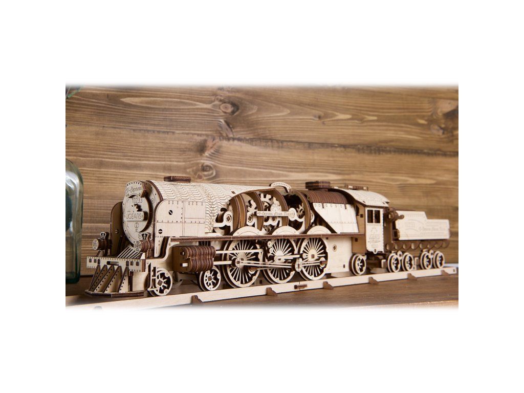 Ugears 3D drevené mechanické puzzle V-Express parná lokomotíva 4-6-2 s tendrom