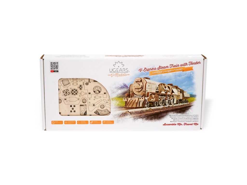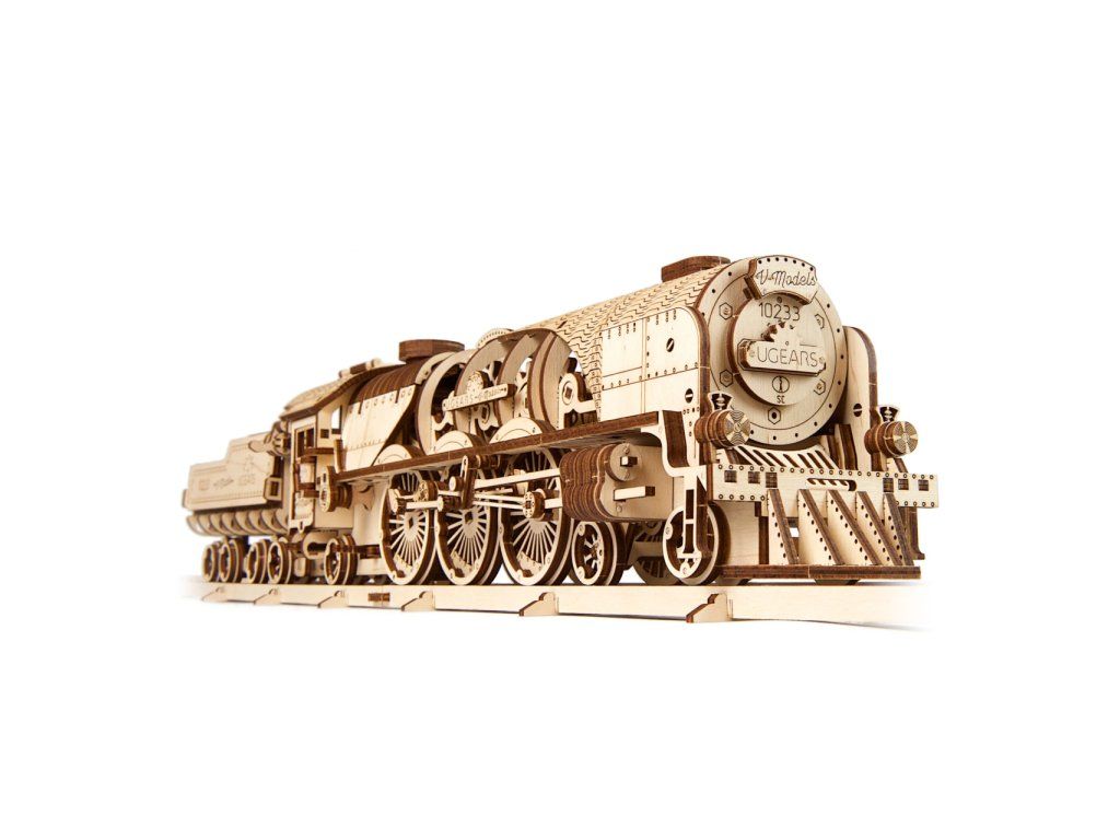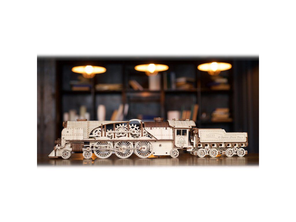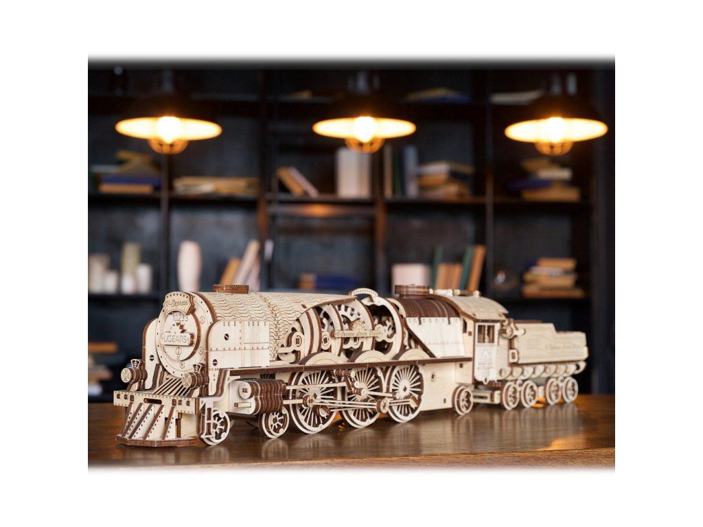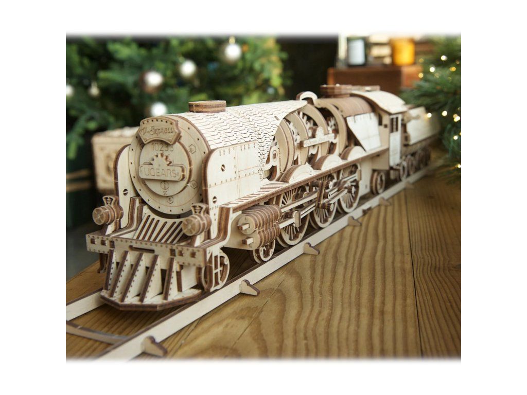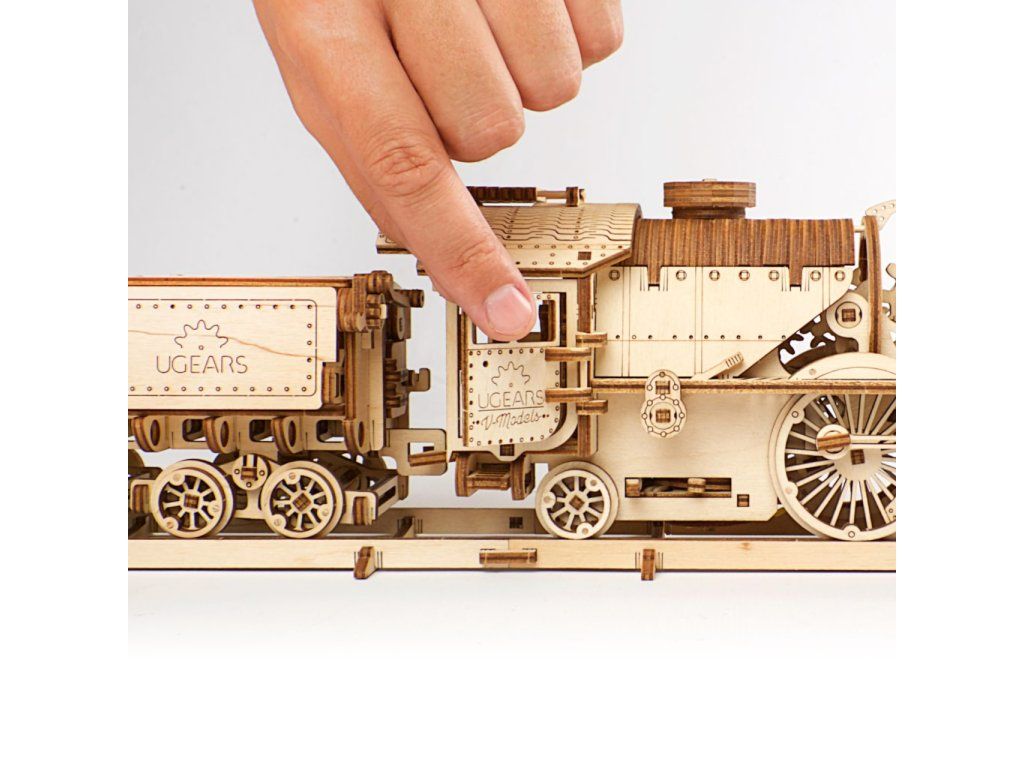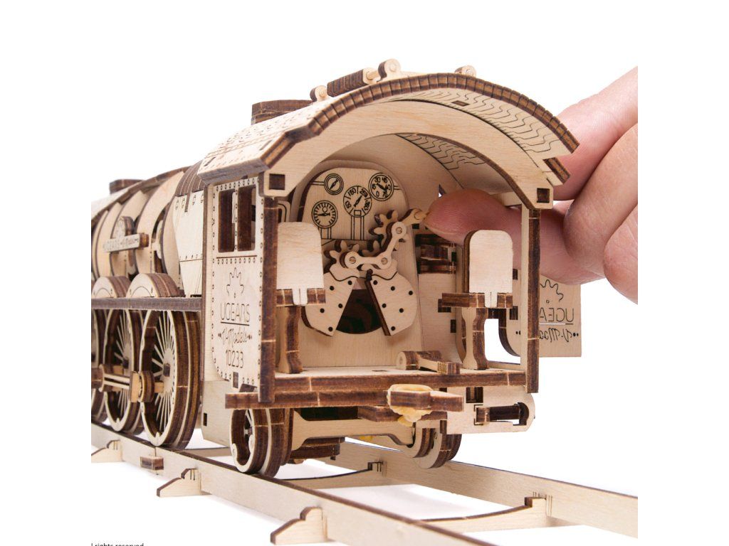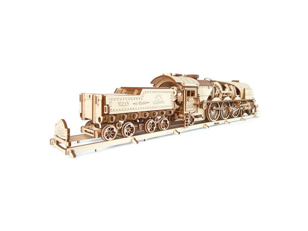 Ugears 3D drevené mechanické puzzle V-Express parná lokomotíva 4-6-2 s tendrom