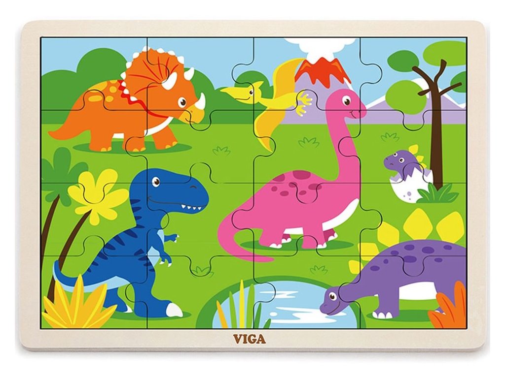 VIGA Dřevěné puzzle Dinosauři, 16 dílků