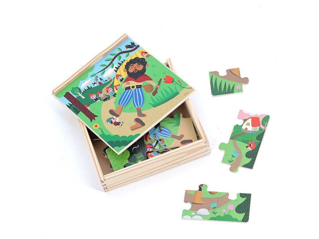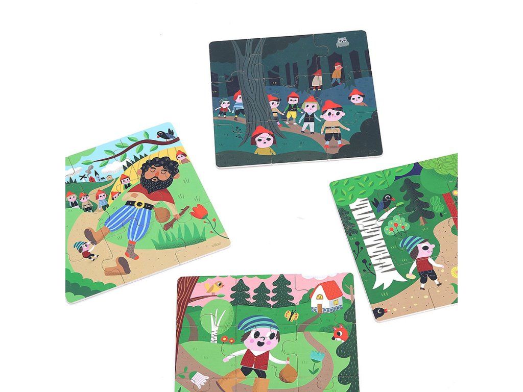 Vilac Drevené puzzle O Palčekovi 4 v 1