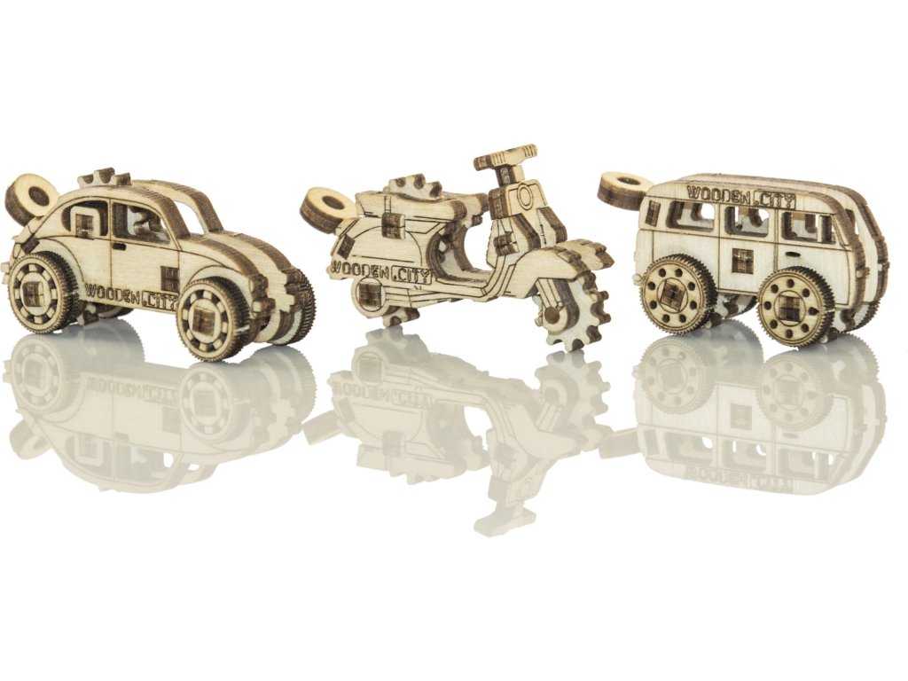 WOODEN CITY 3D puzzle mini sada Widgets: Historická vozidla 35 dílků