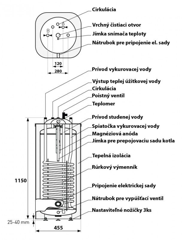 | Pripojenie vykurovacej vody (B): | 1″ |
