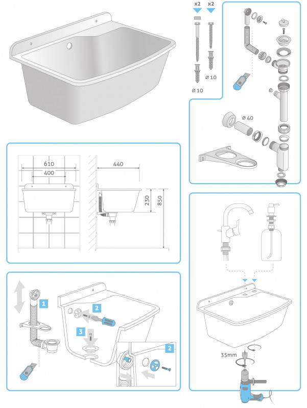 | Typ montáže drezu: | Na stenu |