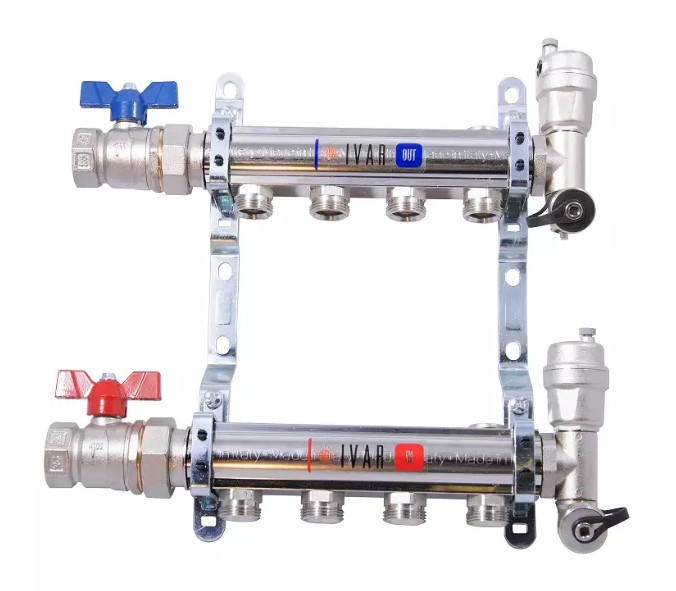 Zostava rozdeľovač/zberač pre vykurovacie telesíá - bez skrine - 5/4"xEK; 6cestný; nikel