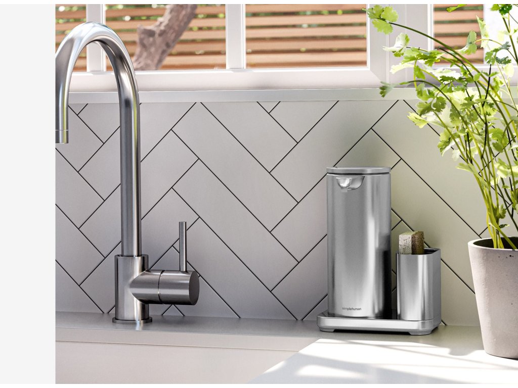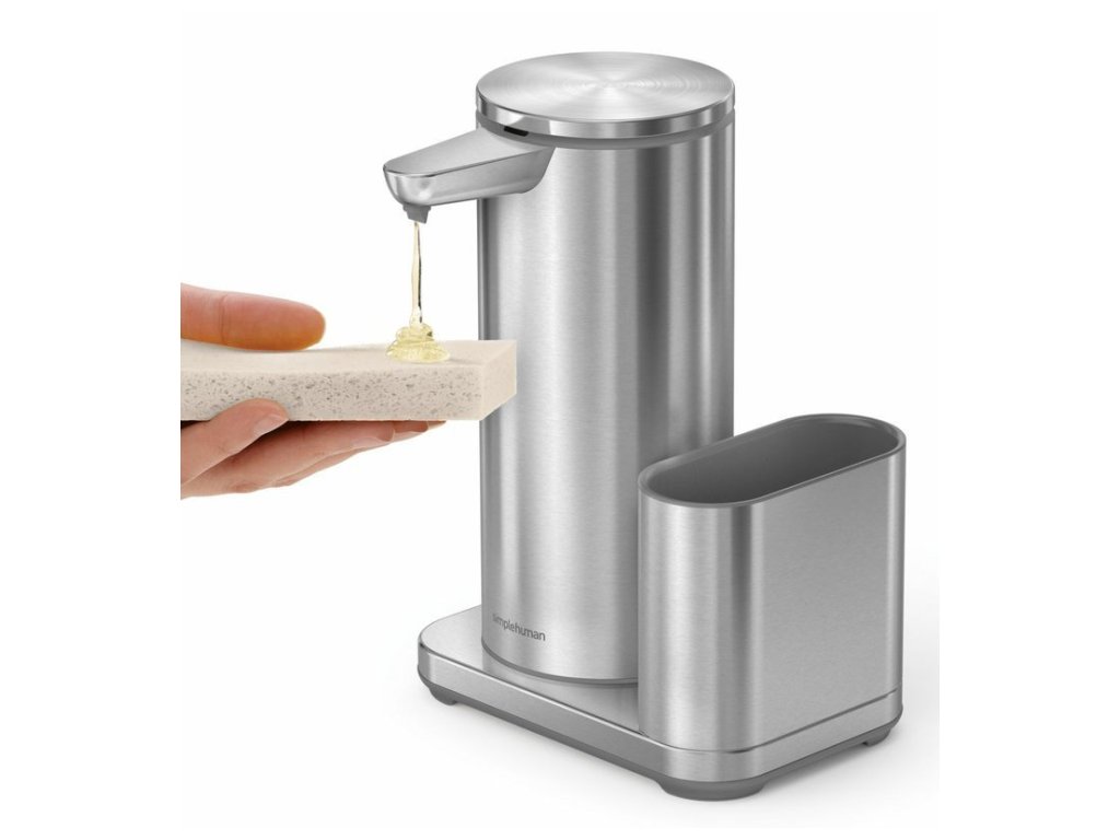 Senzorový dávkovač mydla Simplehuman s nerezovým držiakom na hubku s objemom 414 ml zatočí v kuchyni či kúpeľni s baktériami. S týmto prístrojom už nemusíte siahať na kocku mydla či klasický pumpovací typ. Jednoducho len nastavte dlaň a senzor vám podá presnú dávku mydla.