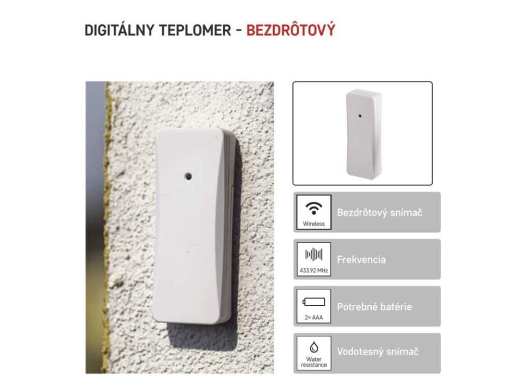 | napájanie čidla: | 2× 1,5 V AAA (nie sú súčasťou balenia) |