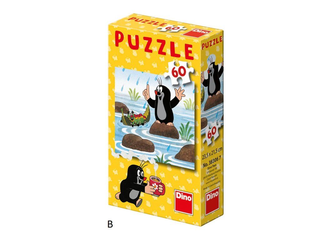 Cena je uvedená za 1 kus. V tomto rade puzzle môžete vyberať z rôznych motívov a prípadne z nich pozbierať celú sériu krtkových príbehov. Rýdzo česká postavička Krtka nesmie chýbať v žiadnej detskej izbe. Vďaka skladačke o 60 dielikoch sa s krtkom a jeho kamarátmi Vaša ratolesť nielen bližšie zoznámi, ale hlavne vylepší jemnú motoriku, fantáziu a trpezlivosť. V edícii rozprávok máte na výber z 6 rôznych motívov – zvolený obrázok (písmenko A–F) uveďte do poznámky pri objednávke, pokiaľ je skladom, radi Vám vyhovieme. V opačnom prípade zasielame náhodne. Hlavné vlastnosti: skladačka bola vyrobená v ČRkocky tvoria odolný kartón, ktorý sa neznčí ani pri neopatrnom zaobchádzaní, čo dokazujú aj dôkladné testymateriál je navyše zdravotne nezávadný a spĺňa prísne bezpečnostné normypuzzle pomáha deťom zlepšiť motoriku, rozvíja fantáziu, sústredí sa na jednu činnosť© Zdeněk MilerDodatočné parametre
