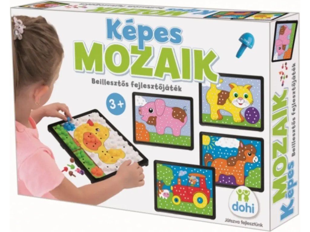 Vzdělávací barevná mozaika je ideální pro zabavení dětí. Cílem je umístit barevné kloboučky do otvorů na obrázkovém podkladu. Vlastnosti: podporuje jemnou motoriku - koordinaci oko-ruka, rozvíjí představivost a kreativitu, trénuje koncentraci a trpělivost. Sada obsahuje: velké barevné kloboučky, 6 barevných papírových předloh, plastovou podkladovou desku.Dodatočné parametre