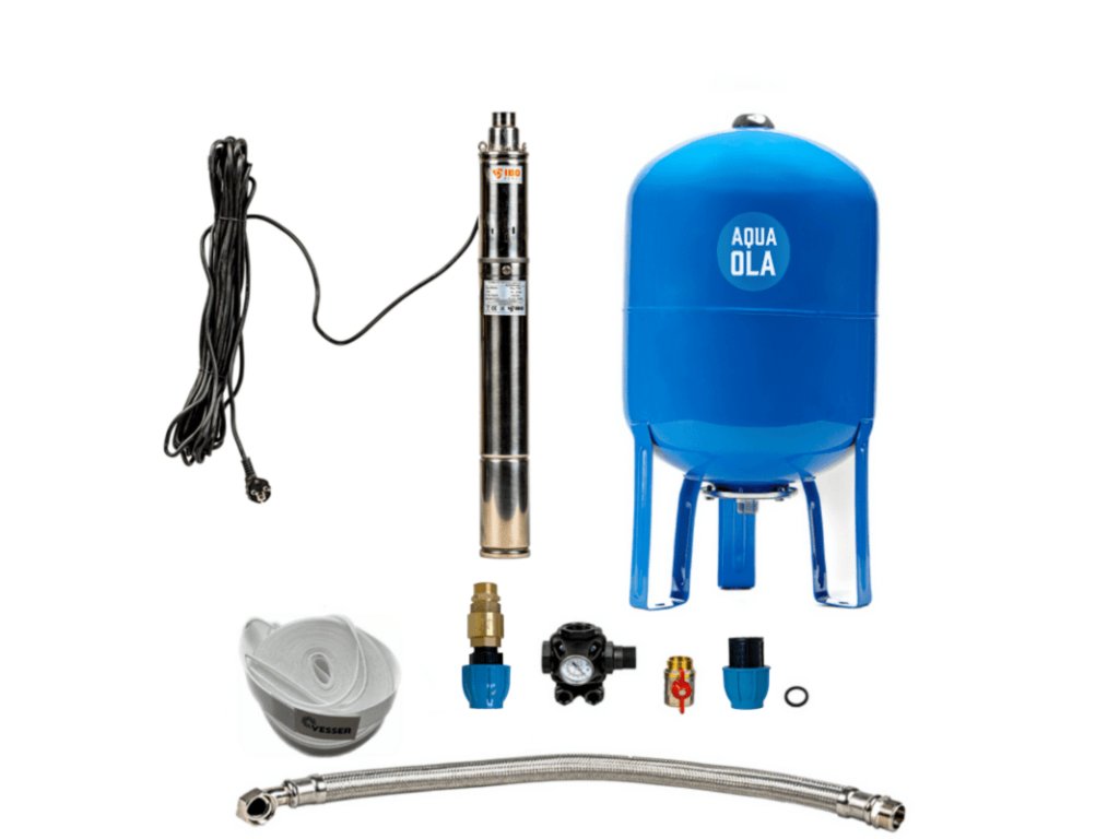 Domáca vodáreň s ponorným vretenovým čerpadlom 3 SQIBO - 0,75 / 50l 230V je určená na čerpanie pitnej a úžitkovej vody. Praktické využitie ponorného čerpadla 3 SQIBO - 0,75 / 50l je predovšetkým v tom, že je možné ho použiť pri čerpaní vody z väčších hĺbok ako 8 m. Domáca vodáreň s ponorným čerpadlom 3 SQIBO - 0,75 / 50l je vhodná pri zriaďovaní vodovodov v rodinných domoch, chatách, letných sídlach, školách a hospodárskych zariadeniach, ako aj na účely zásobovania vodou na postreky a zavlažovanie záhrad Domáca vodáreň s ponorným čerpadlom SQIBO - 0,75 / 50L obsahuje: čerpadlo SQIBO - 0,75 tlaková nádoba stojatá 50L AQUA OLA tlakový spínač PC-2 vsuvka 1" spätná klapka 1 " spojovacia hadica 80cm prechodový kus s vonkajším závitom 32x1" prechodový kus s vnútorným závitom 32x1" guľový ventil MF, M 1" závesné zariadenie pre ponorné čerpadláDodatočné parametre