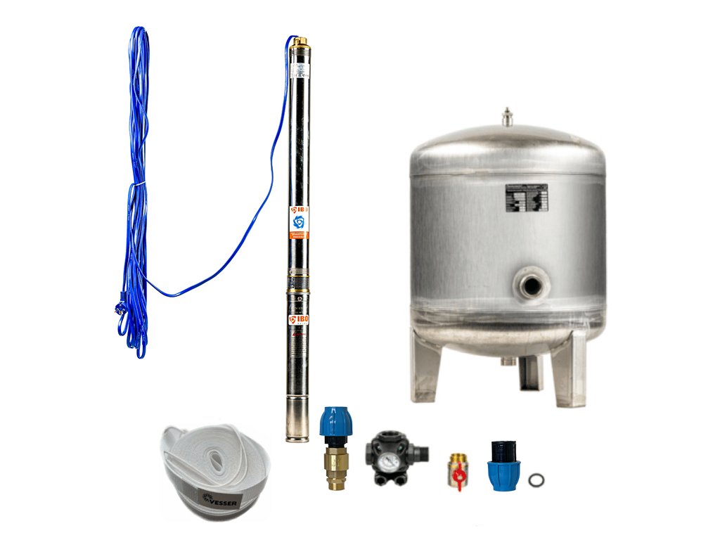 Domáca vodáreň s ponorným čerpadlom 3Ti-15 je určená na čerpanie pitnej a úžitkovej vody. Praktické využitie ponorného čerpadla 3Ti-15 je predovšetkým v tom, že je možné ho použiť k čerpaniu vody z väčších hĺbok ako 8 m. Ponorné čerpadlo 3Ti-15 má plávajúce obežné kolesá a tým zvýšenú odolnosť voči piesku alebo iným abrazívnym látkam, ktoré sa vo vode môžu nachádzať. Ponorné čerpadlo s označením RTS znamená (Resistance To Sand = odolné voči piesku). Domáca vodáreň s ponorným čerpadlom 3Ti-15 je vhodná pri zriaďovaní vodovodov v rodinných domoch, chatách, letných sídlach, školách a hospodárskych zariadeniach, ako aj na účely zásobovania vodou na postreky a zavlažovanie záhrad. Tým, že ponorné čerpadlo použité v tejto domácej vodárni má plávajúce obežné kolesá, je možné ho použiť aj do čerstvých / nových studní a vrtov, pretože dokáže nasať a prečerpať aj vodu so zvýšeným obsahom piesku či iných abrazívnych látok, ktoré sa zvyčajne v čerstvých / nových vrtoch ešte nachádzajú. Domáca vodáreň s ponorným čerpadlom 3Ti-15 / 90L nerez obsahuje: čerpadlo 3Ti-15 tlaková nádoba nerezová 90L tlakový spínač PC-2 vsuvka 1" spätná klapka 1" spojovacia hadica 80cm prechodový kus s vonkajším závitom 32x1" prechodový kus s vnútorným závitom 32x1" guľový ventil MF, M 1" závesné zariadenie pre ponorné čerpadlá Všimnite si prosím súvisiace produkty. Pri každej domácej vodárni sú produkty, ktoré sa najčastejšie používajú a ktoré môžete potrebovať.Dodatočné parametre