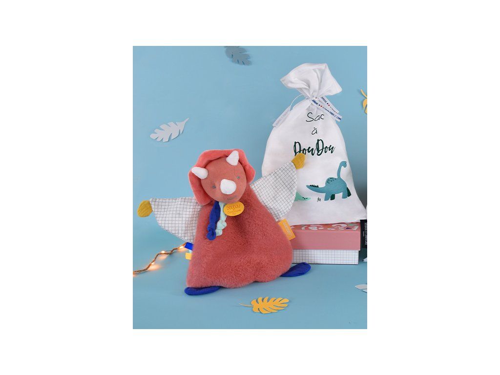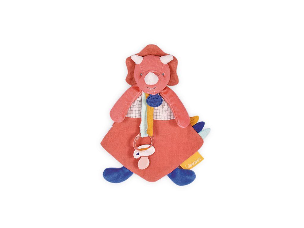 Doudou Darčeková sada - Hračka s úchytom na cumlík dinosaurus ružový 23 cm