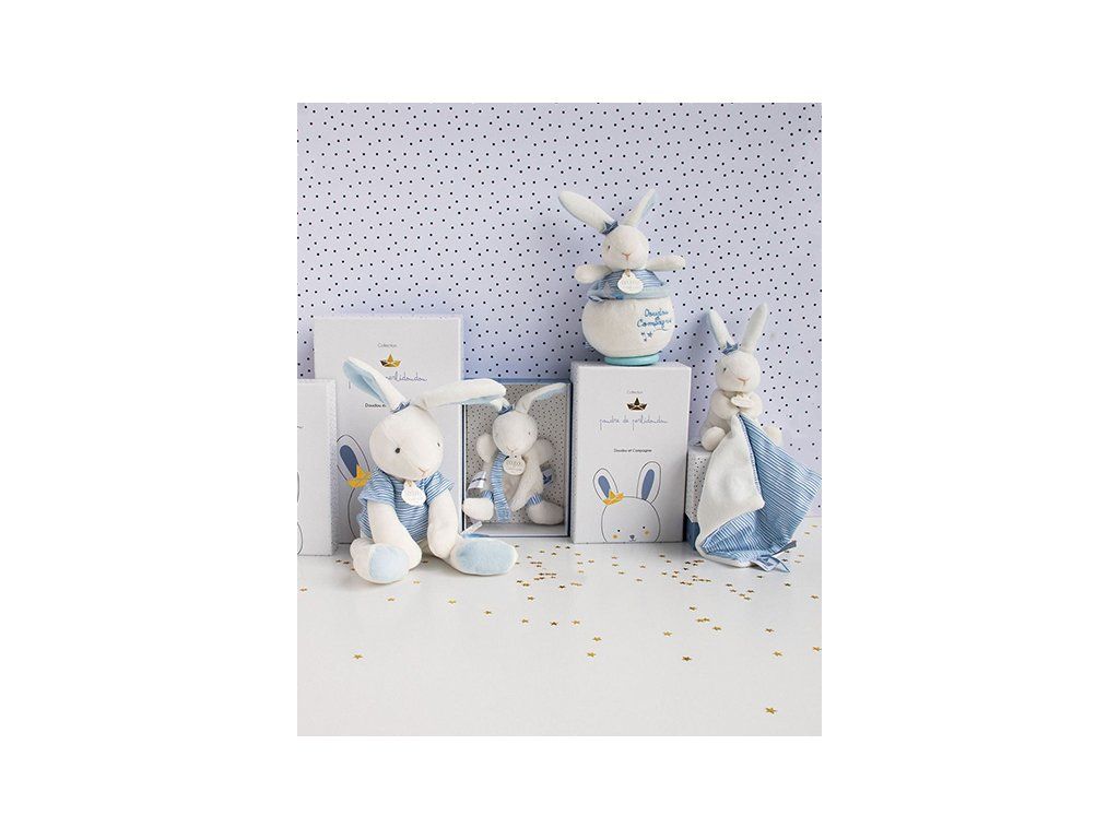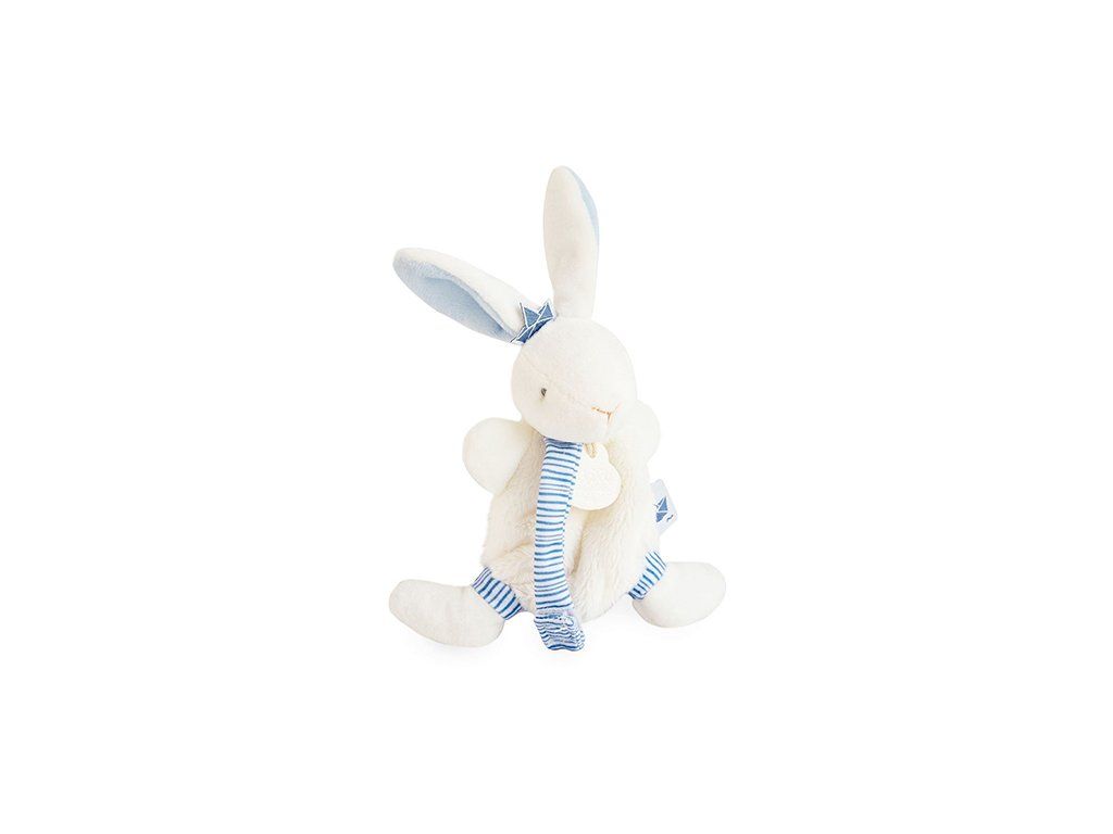Doudou Darčeková sada - Hračka s úchytom na cumlík králiček 15 cm modrý