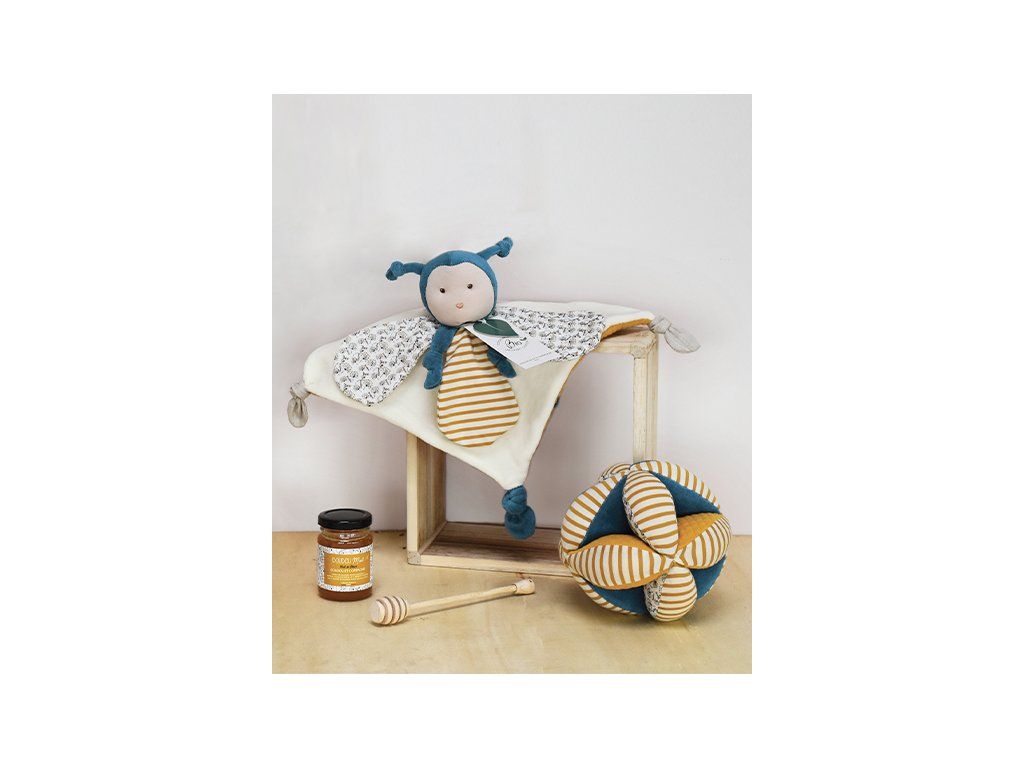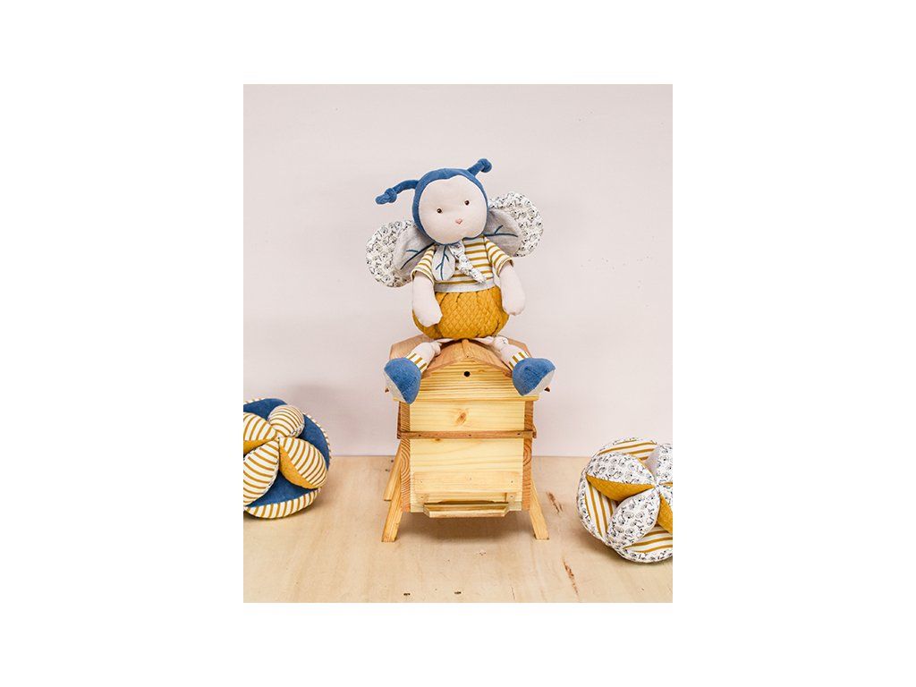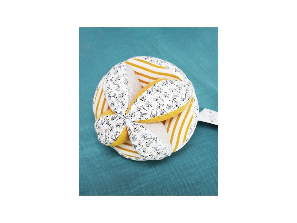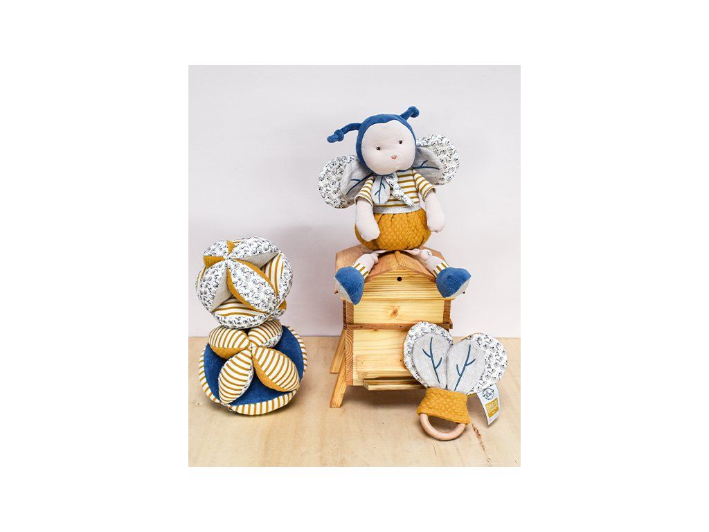 Doudou Textilná aktívna lopta s hrkálkou včielka 15 cm