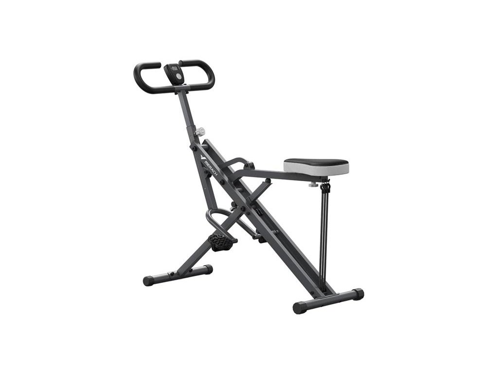 MERACH MR-R07BH1 Squat Machine je multifunkčné tréningové zariadenie, ktoré umožňuje vykonávať polovičné, hlboké a plné drepy v uhloch 30°, 60° a 90°. Robustná oceľová konštrukcia s nosnosťou do 350 libier (približne 159 kg), 3 úrovne odporu, nastaviteľné riadidlá (4 úrovne) a sedadlo (5 úrovní), ergonomické pedále a zabudovaný tréningový monitor vám umožnia efektívne formovať nohy, hýžde a jadro tela bez preťažovania kolien. Je to bezpečný, progresívny tréning celého tela - doma, podľa vašich podmienok.