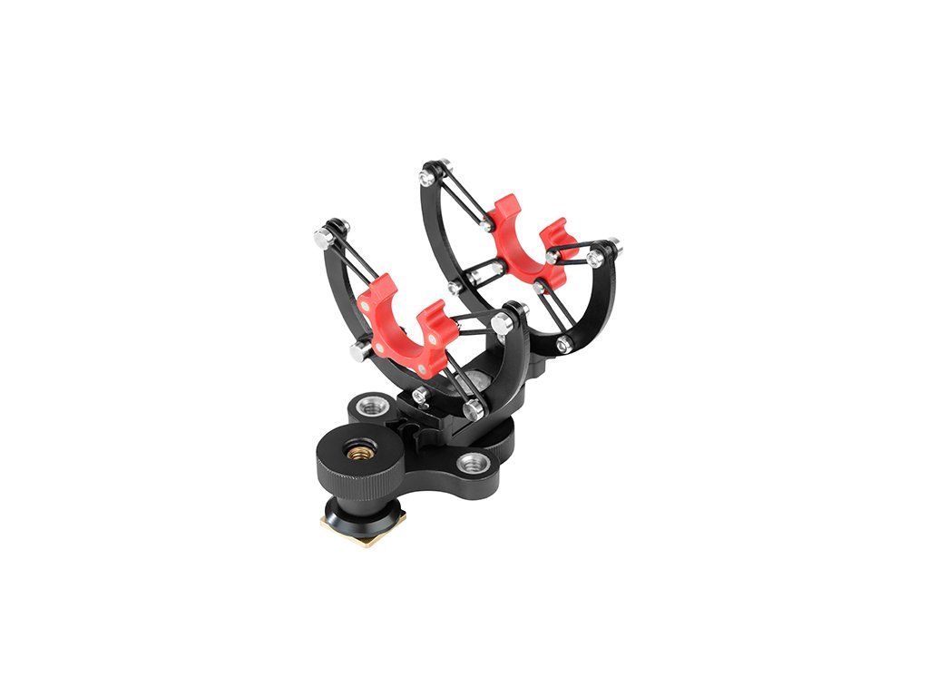 Tento robustný držiak je vybavený s 8bodovým systémom odpruženia, ktorý zaručene minimalizuje otrasy a vibrácie. Tie mnohokrát majú negatívny vplyv na celkovú kvalitu zvukového záznamu, v ktorom je následne počuť manipulačný hluk, šum a ďalšie nechcené ruchy. Držiak je naviac vyrobený z nylonu a má tak veľmi priaznivé vlastností z hľadiska tlmenia nárazov. Zároveň je držiak neuveriteľne ľahký a vysoko odolný voči mechanickému opotrebovaniu, takže sa dobre prenáša a bude vám slúžiť spoľahlivo a po oveľa dlhšiu dobu.