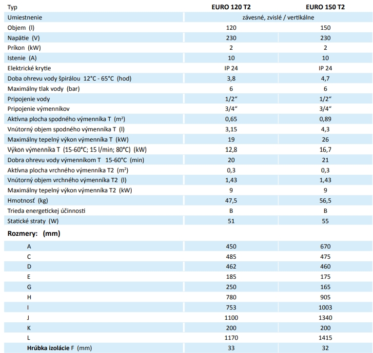 Kombinovaný vertikální bojler Eliz EURO 150 T2 - se 2 výměníky