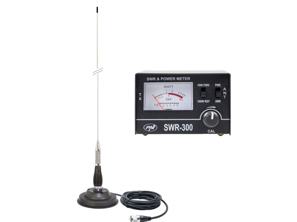 Anténa PNI ML100 CB, 100 cm, magnet 125 mm a reflektometer PNI SWR-300 na meranie SWR, čierna