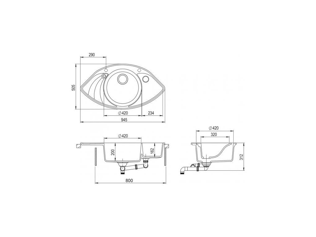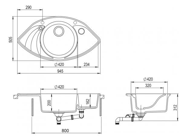| Typ drezu: | Drez s vaničkou a odkvapom |