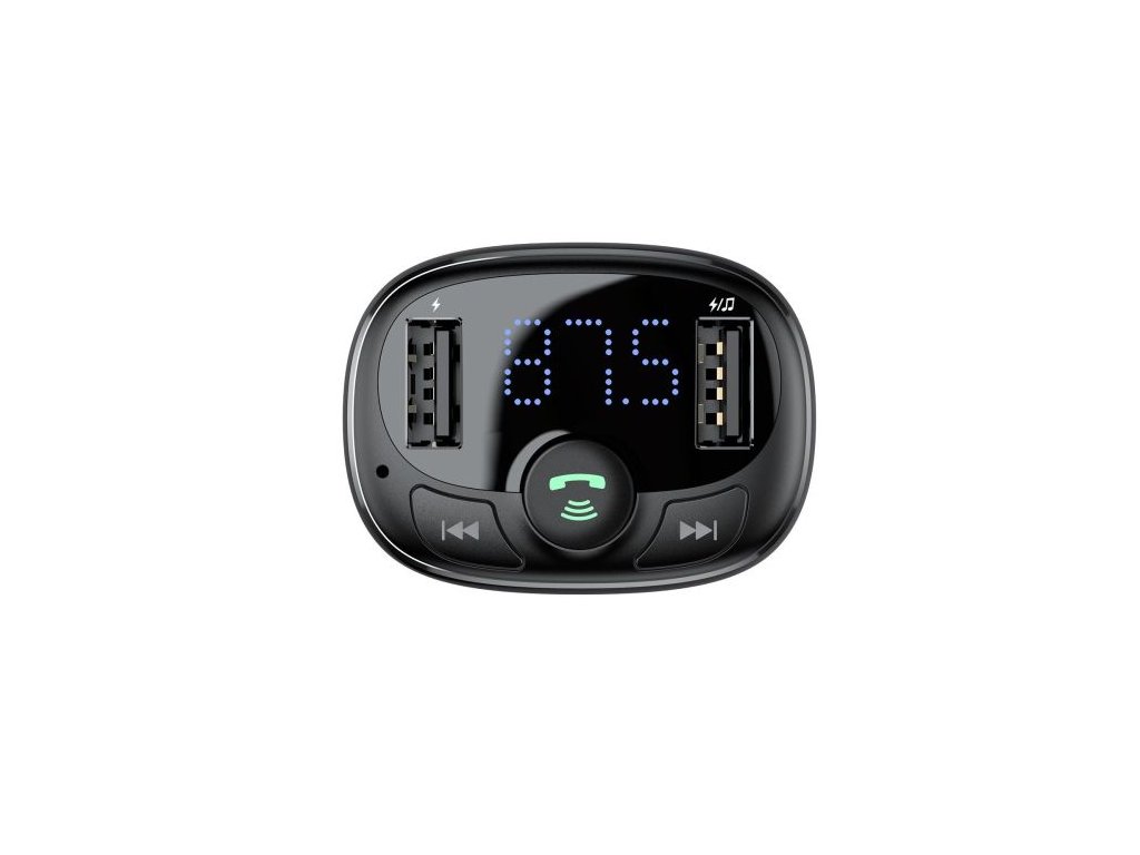 Baseus Car Charger Bluetooth FM Transmitter S-09A, BT. 4.2, 10m Range, 2x USB-A 3.4A, Micro SD card Reader, Black (CCMT000001)