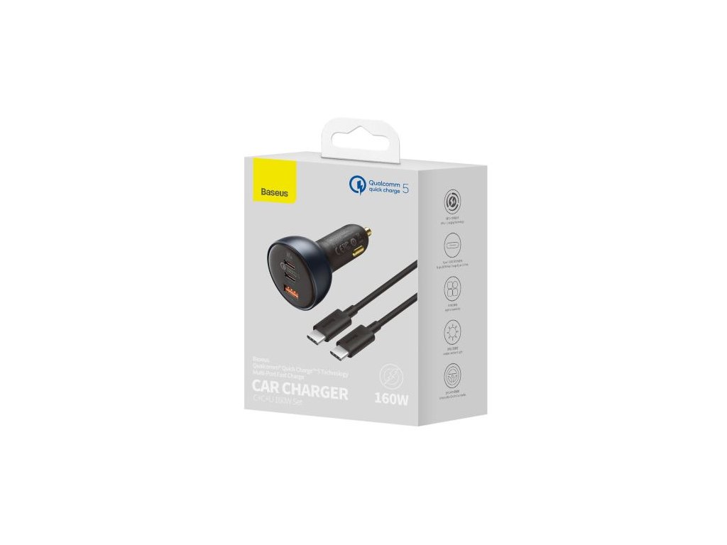 Baseus Car Charger Fast charger U+C+C, PD 3.0, QC 5.0, PPS, (with C+C cable 100W (20V/1.5A) 1m) 160W, Black (TZCCZM-0G)