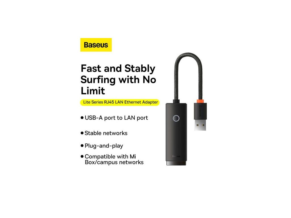 Baseus Network Adapter Lite Series Ethernet Adapter USB-A to RJ45 LAN Port (100Mbps) Black (WKQX000001)