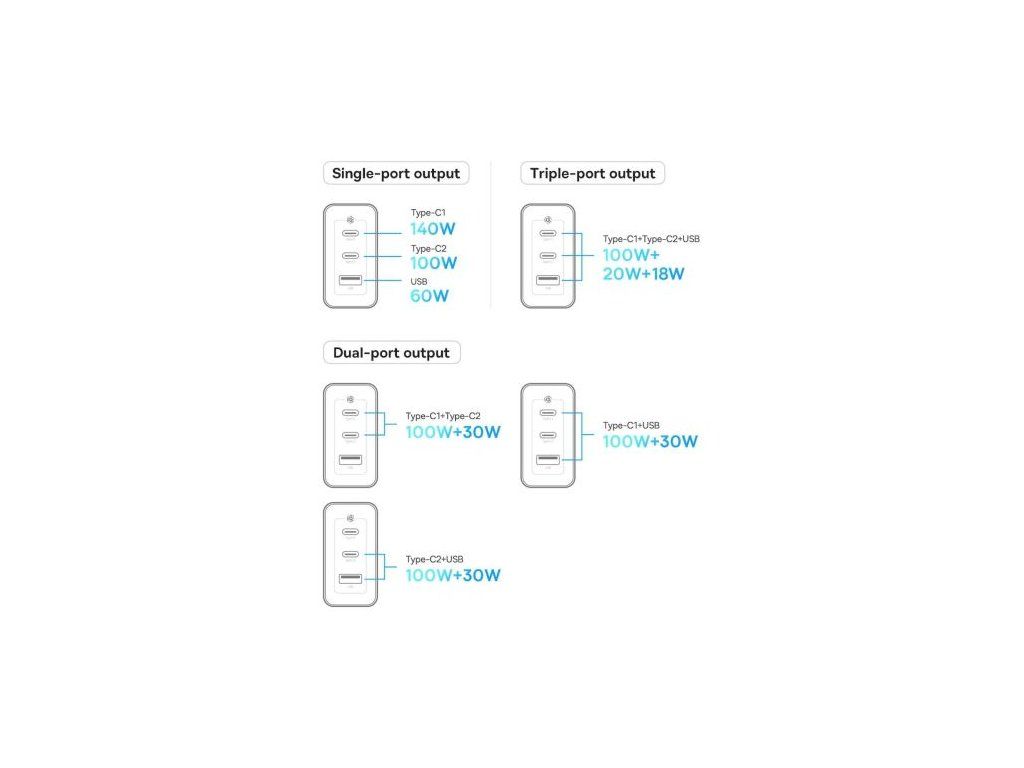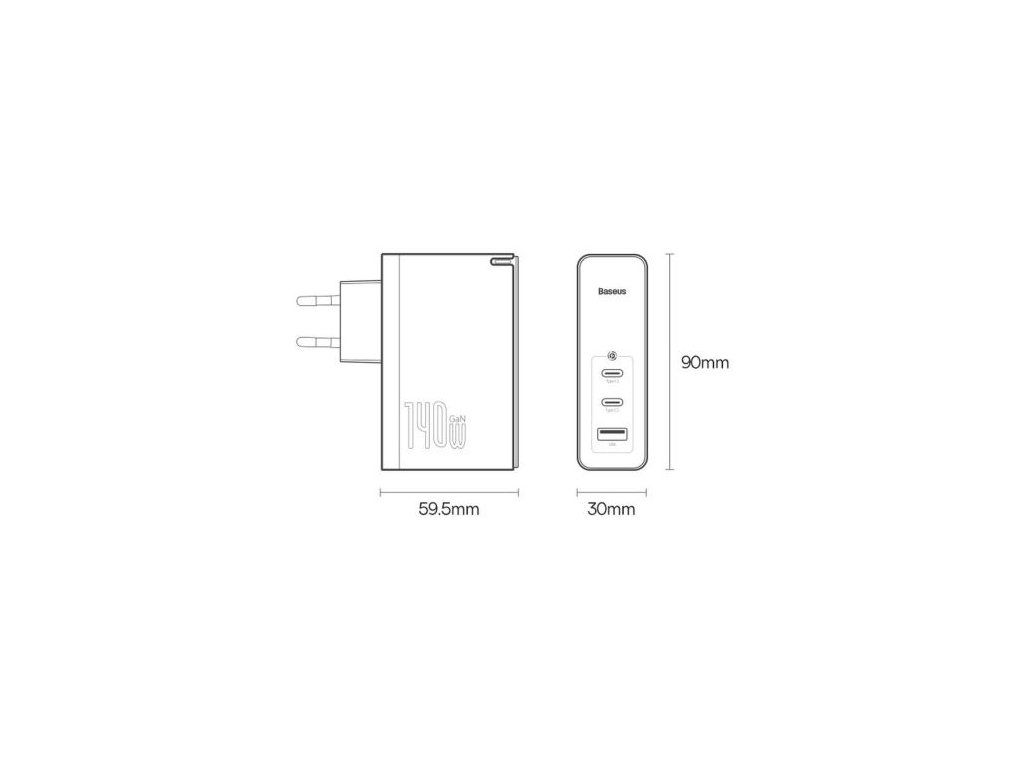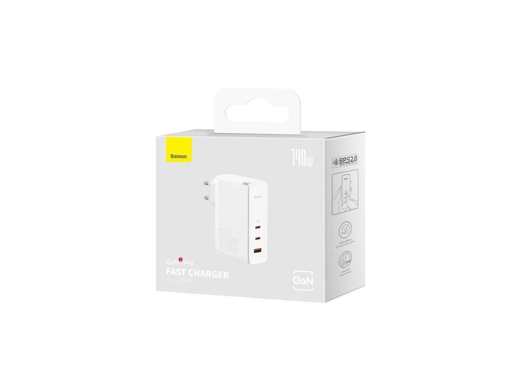 Baseus Travel Charger GaN5 Pro Fast wall charger, C+C+U, 140W White EU (CCGP100202)